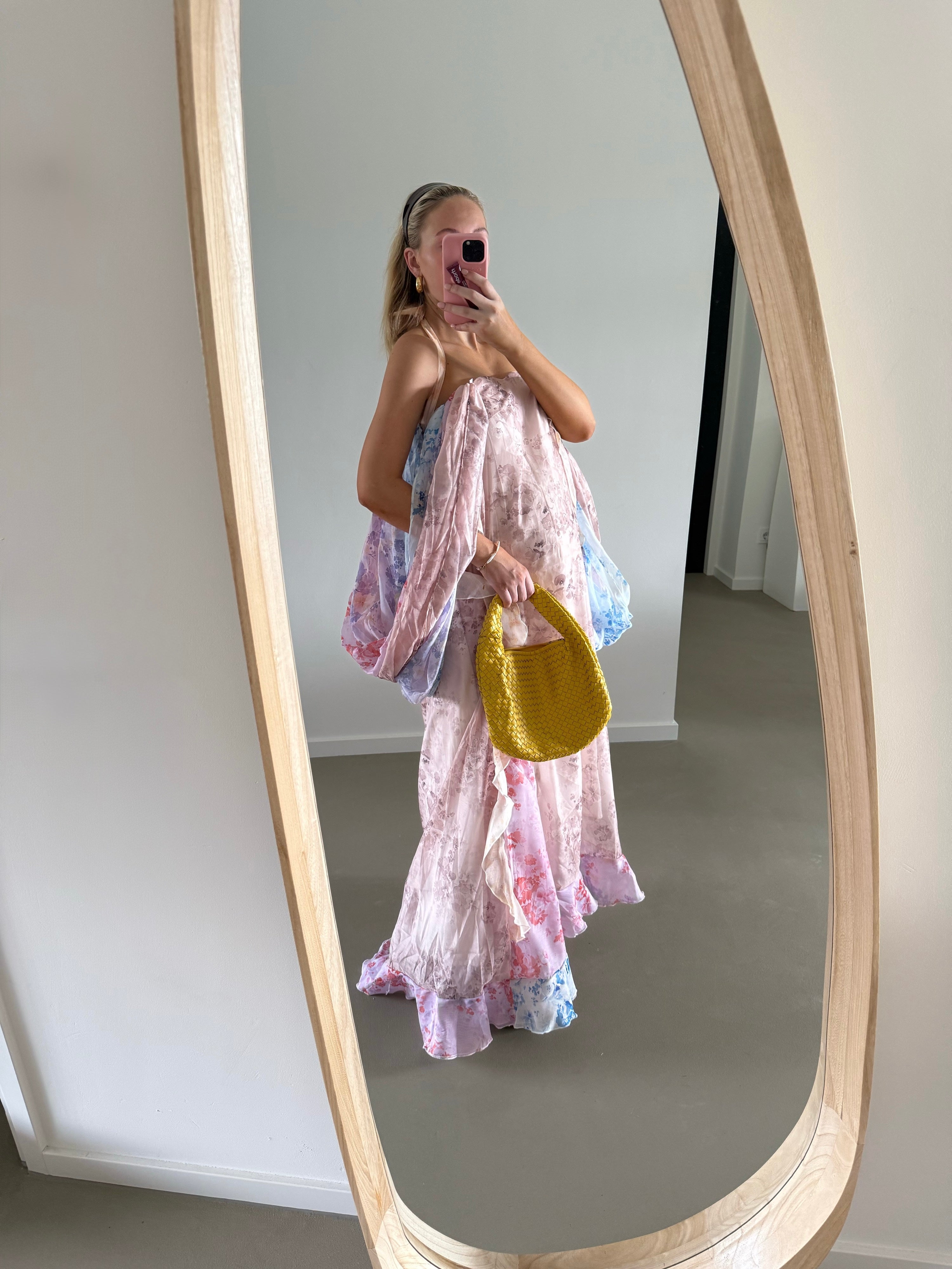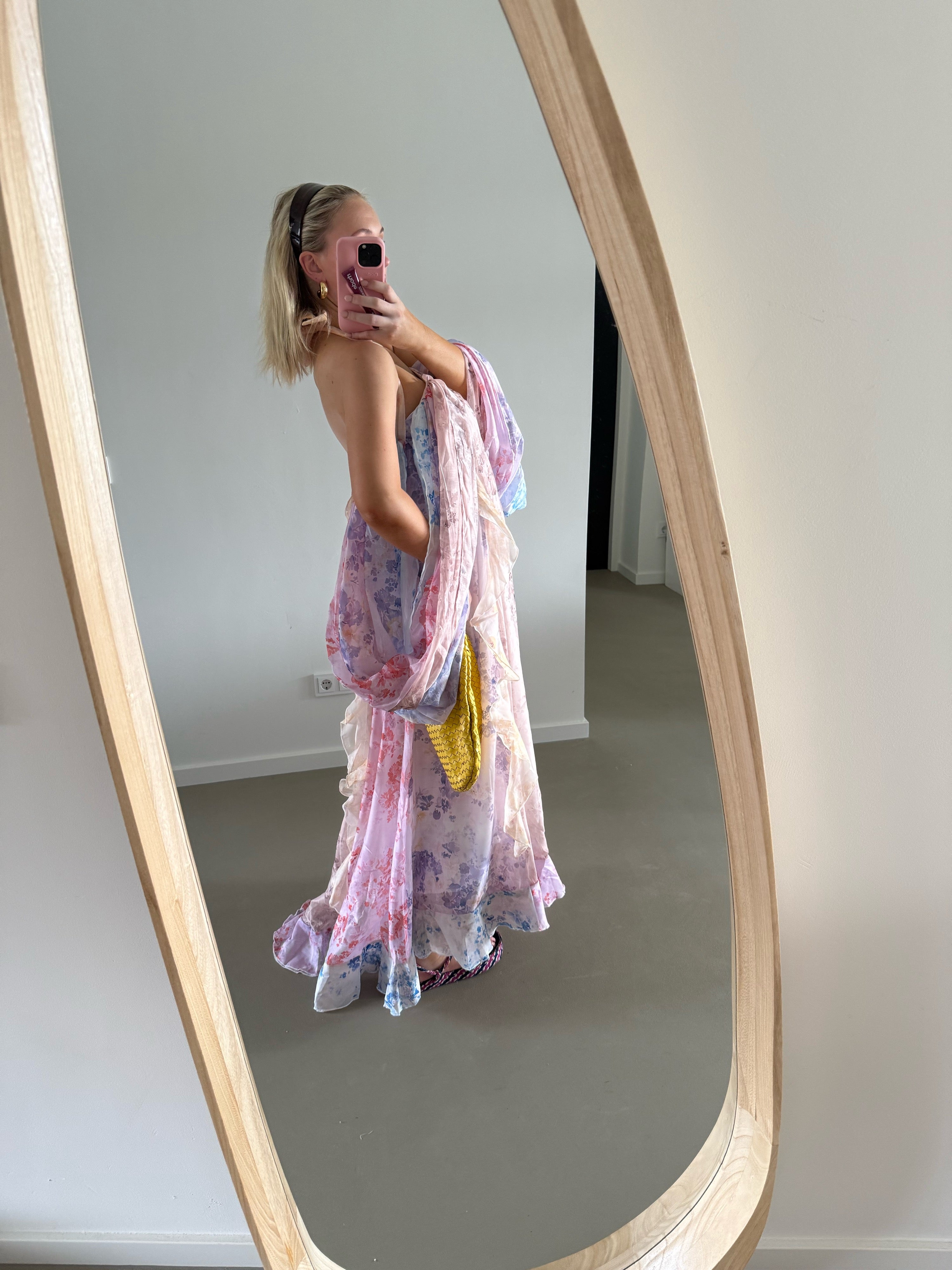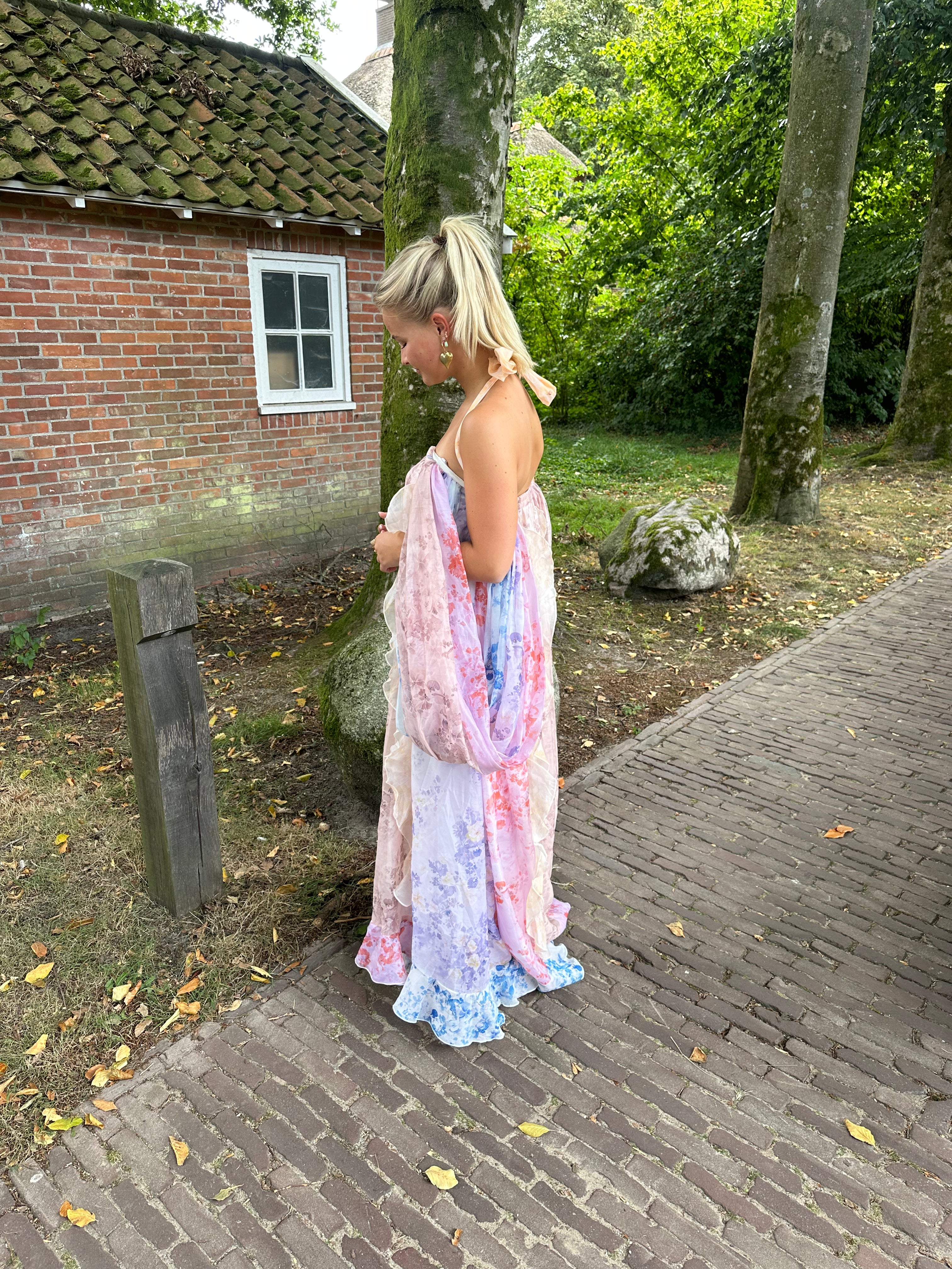 Deze lange jurk straalt zomer uit dankzij de levendige kleuren en de prachtige, speelse prints. Het luchtige ontwerp zorgt voor optimaal draagcomfort, terwijl de flatterende pasvorm in één maat geschikt is voor verschillende lichaamstypes. Perfect voor een dagje strand, een zomerse borrel of een vakantie in de zon. Een echte eye-catcher in je garderobe.