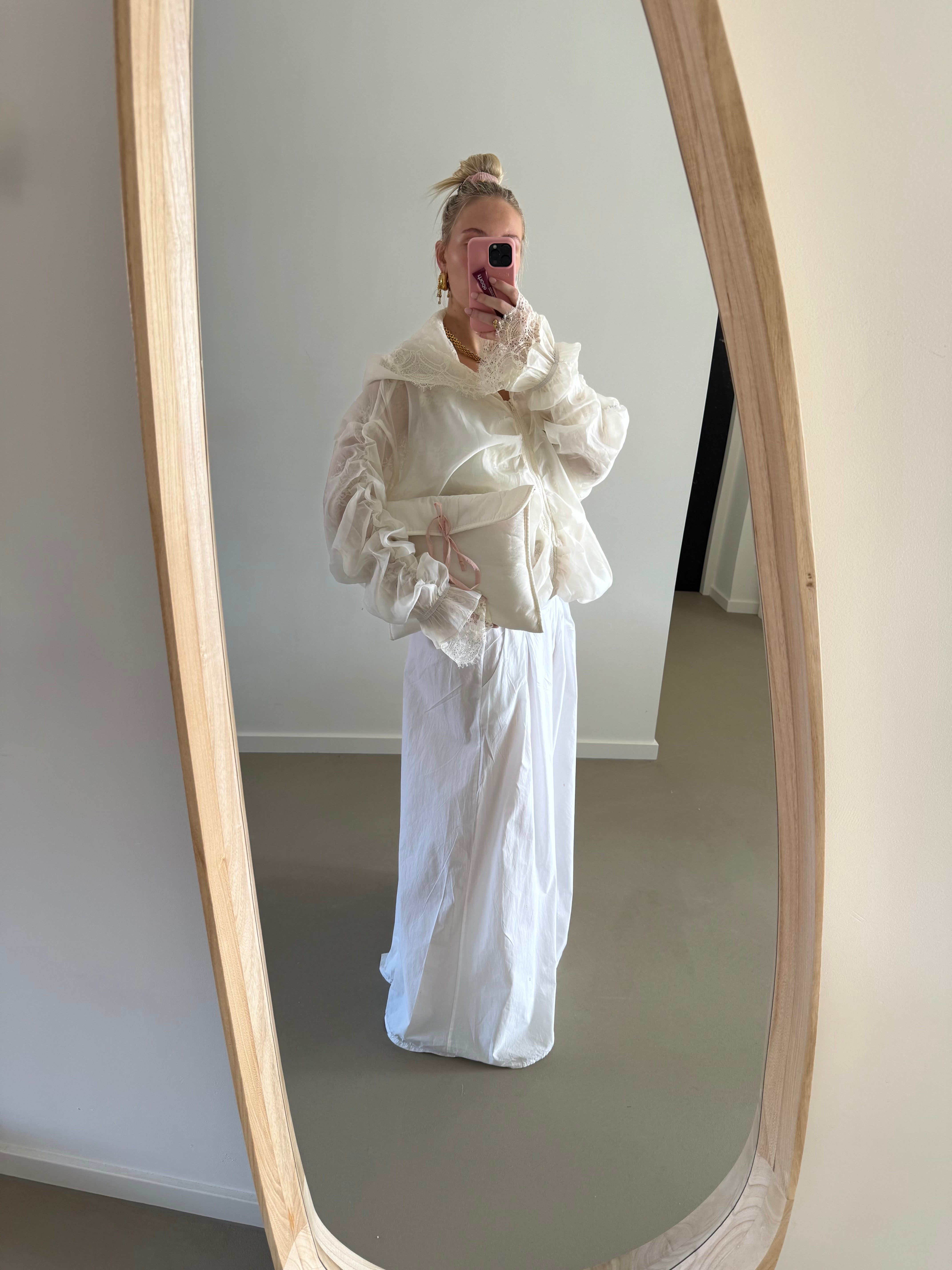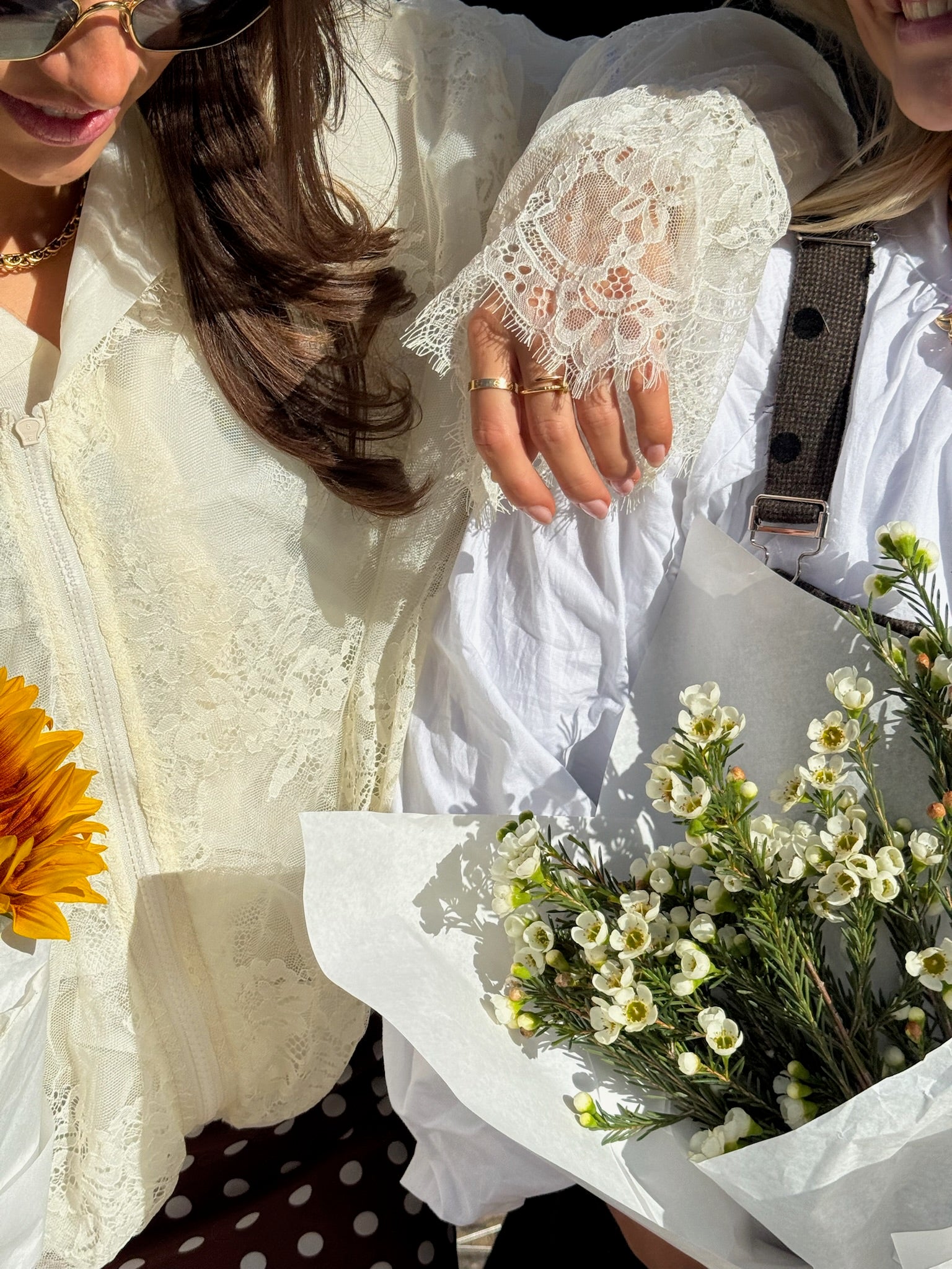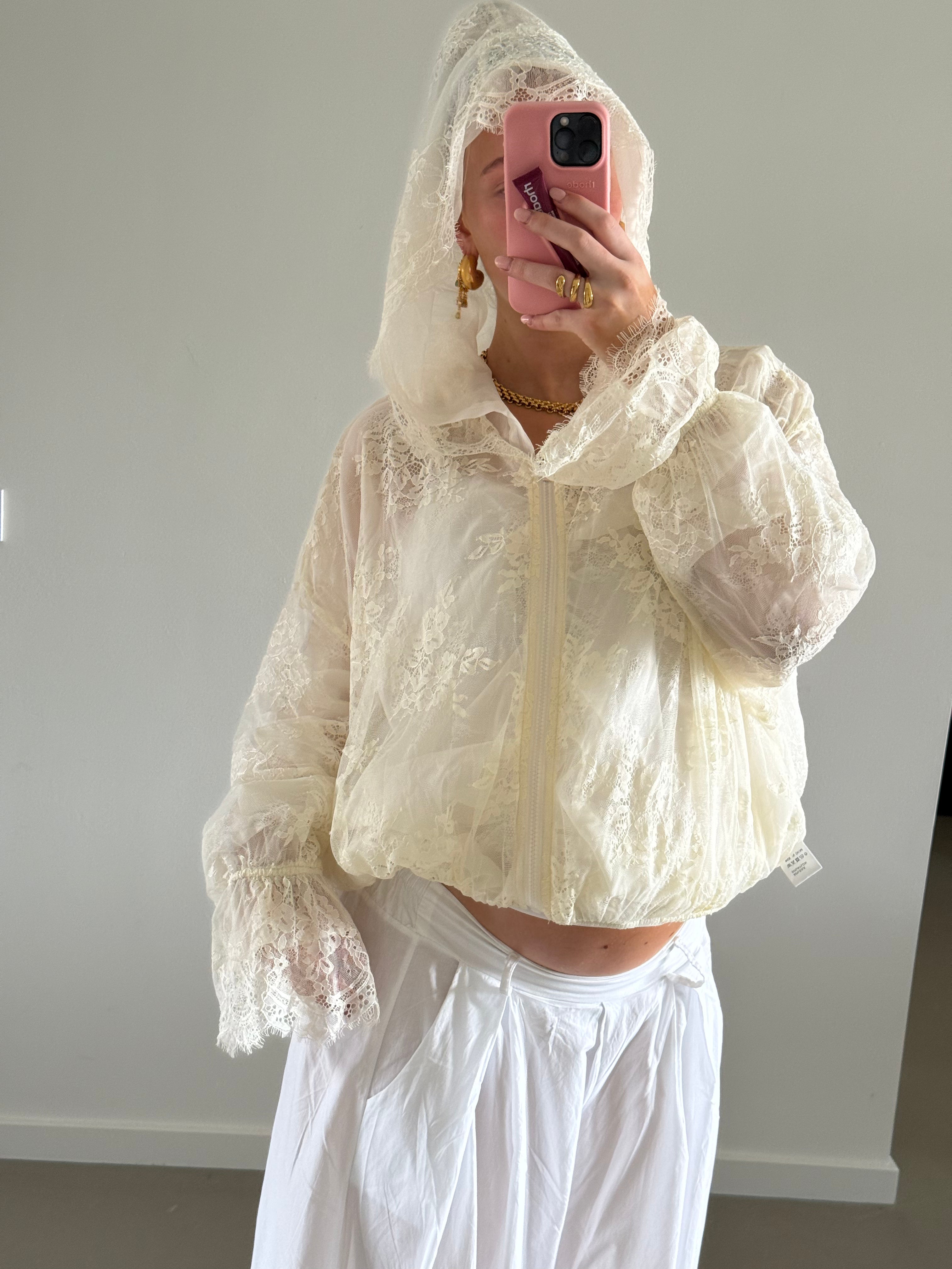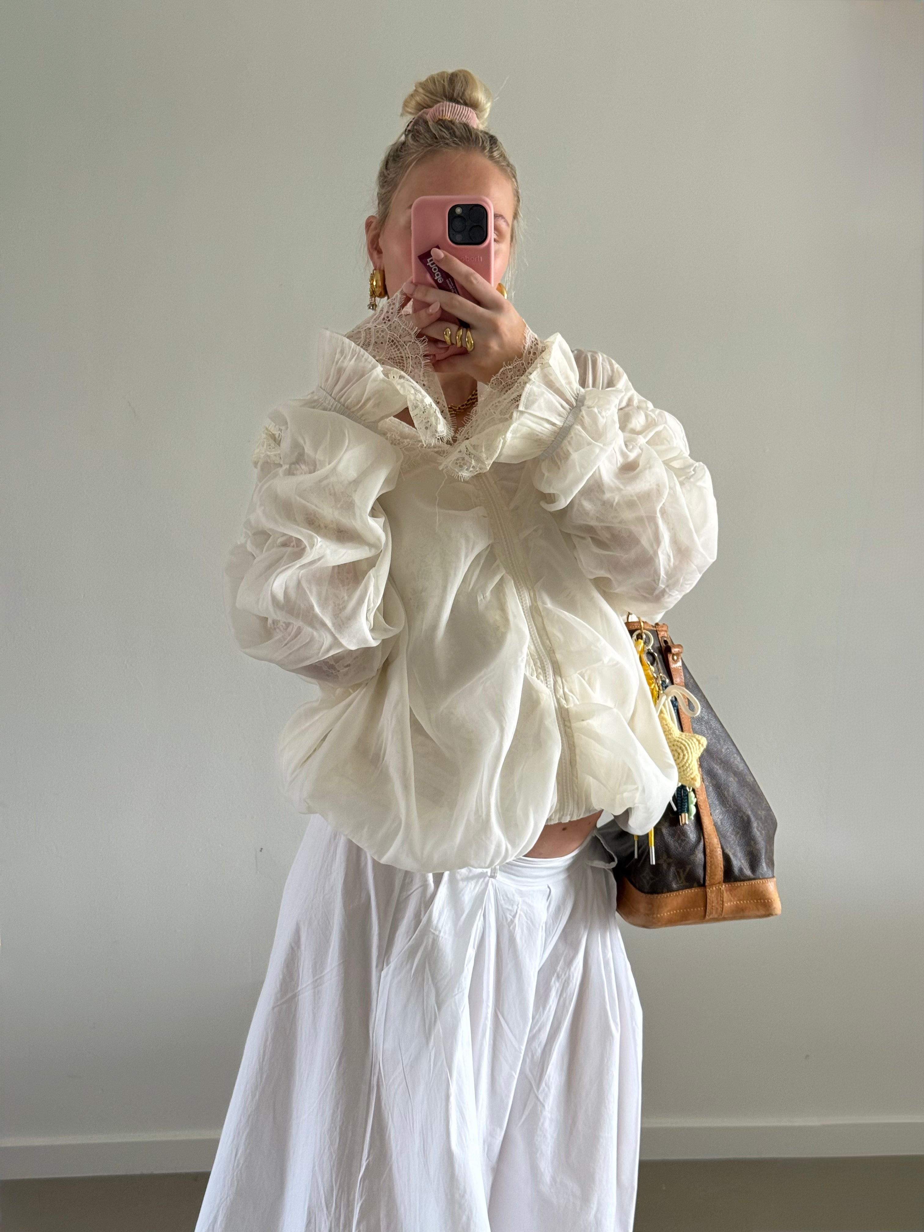 Dit jasje hebben wij bewust binnenstebuiten gedragen om een mooier, speels effect te creëren.