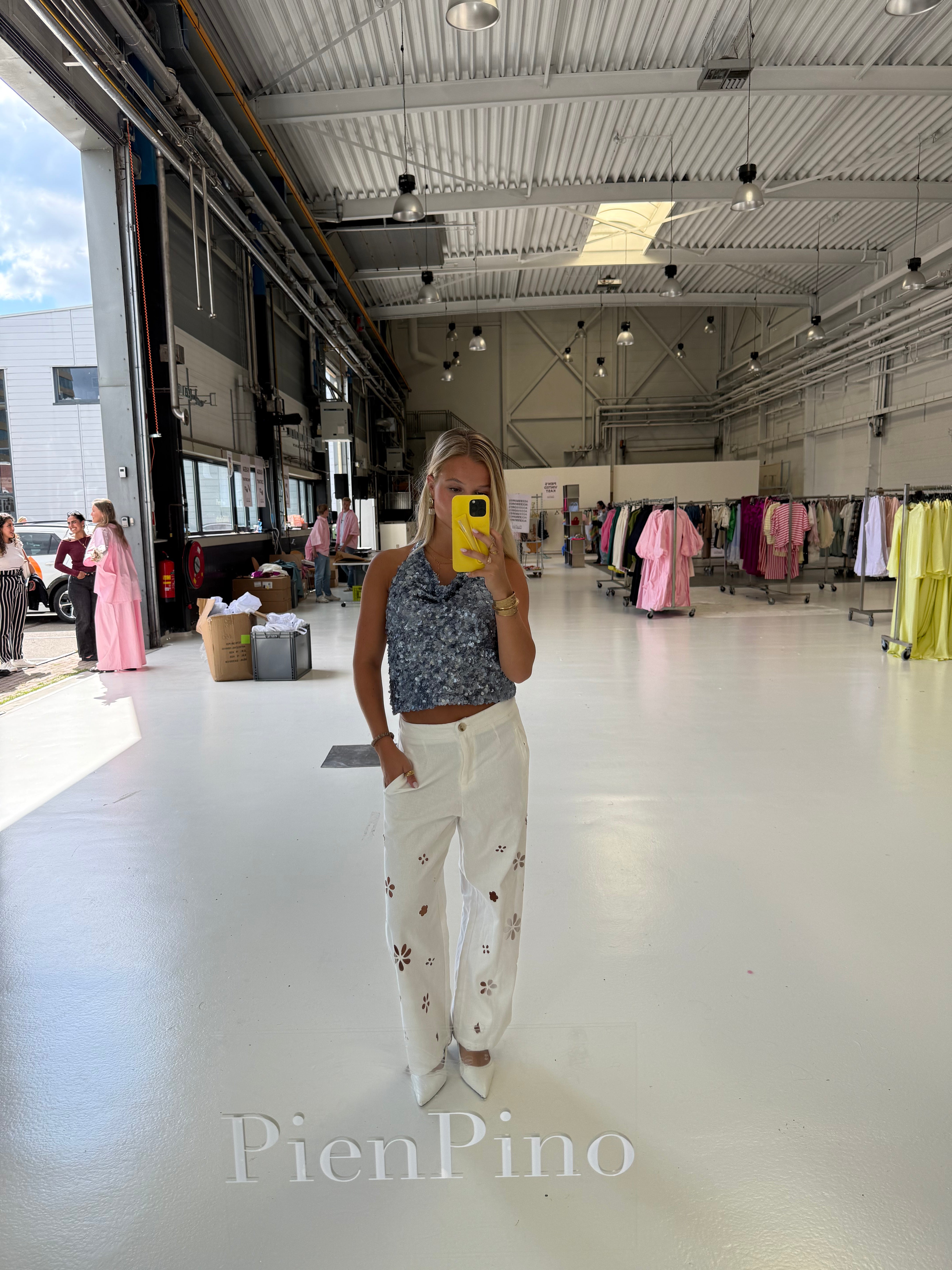 De top heeft een comfortabele pasvorm en is afgewerkt met oog voor detail, zodat je hem moeiteloos de hele avond kunt dragen. Combineer hem met een strakke broek en hoge hakken voor een moderne partylook, of draag hem met een rok en statement accessoires om een glamoureuze outfit compleet te maken.