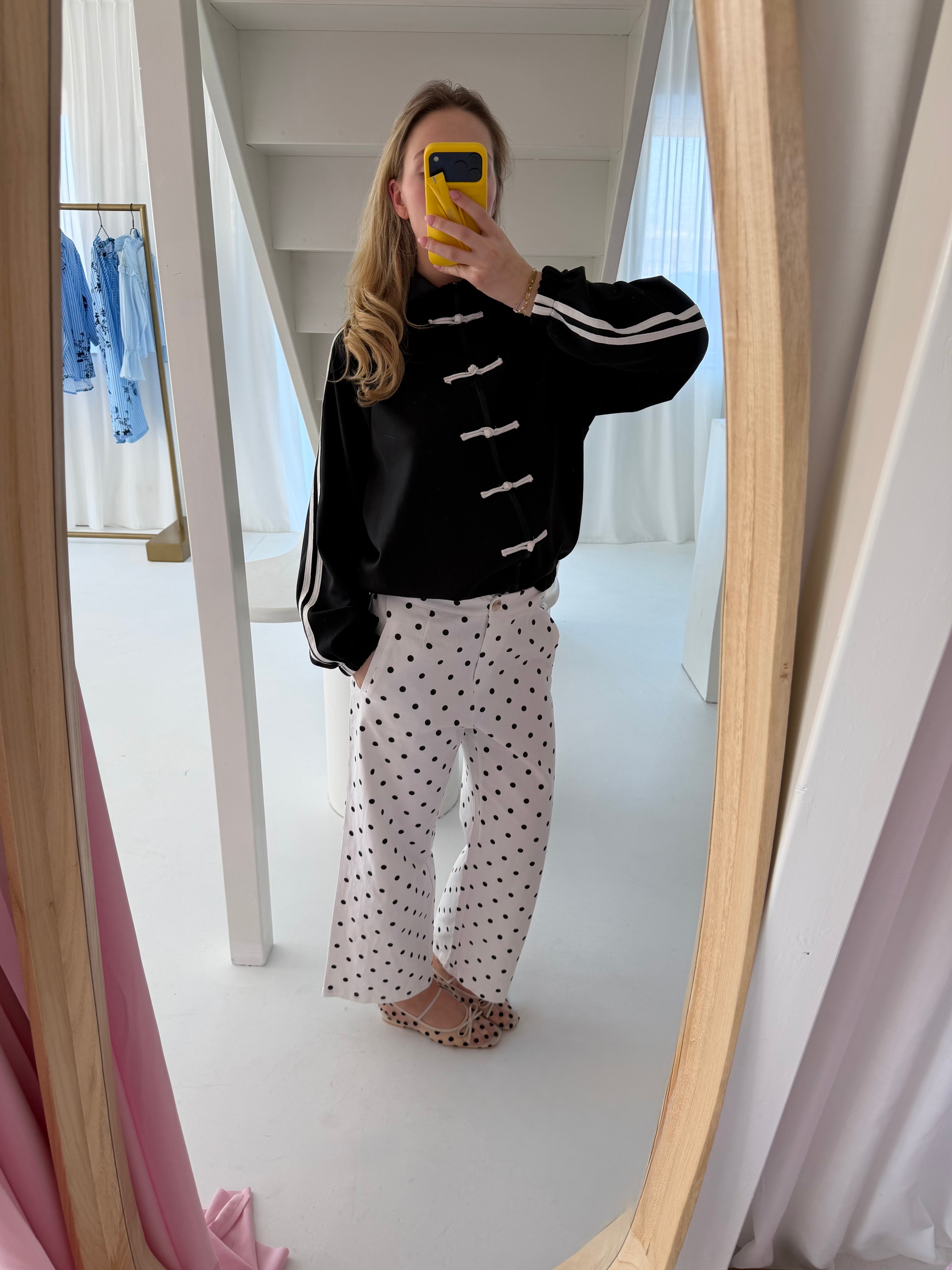 De Mama Jacket in zwart is een prachtig item dat stijl en elegantie uitstraalt. De mooie afwerking en het tijdloze ontwerp geven het jasje een bijzondere en stijlvolle uitstraling.