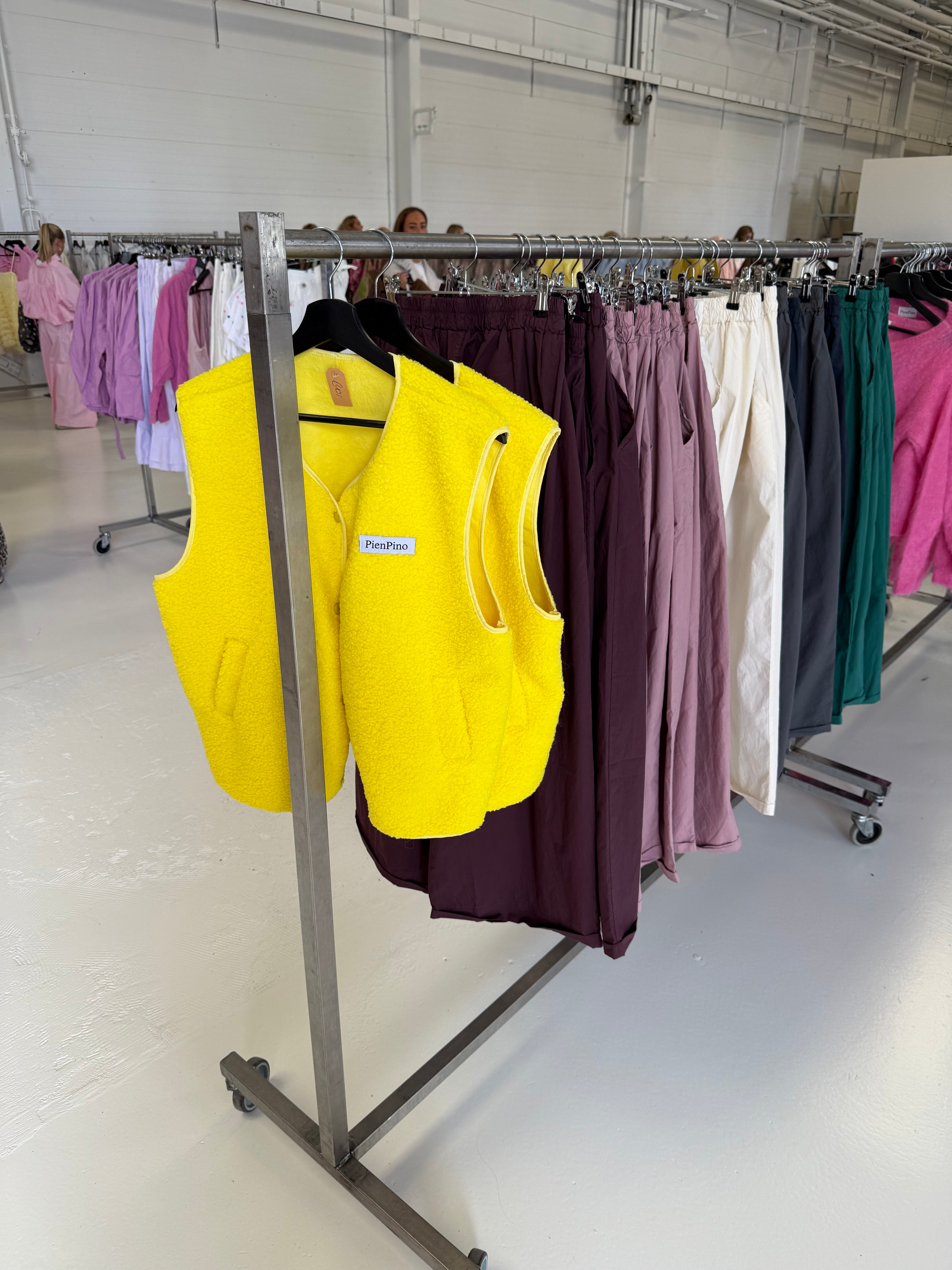 De frisse gele kleur geeft een eigentijdse en opvallende touch, waardoor het gilet eenvoudig te stylen is over diverse outfits – van casual tot meer gekleed. Dankzij het veelzijdige design is dit item geschikt voor dagelijks gebruik én bijzondere gelegenheden.