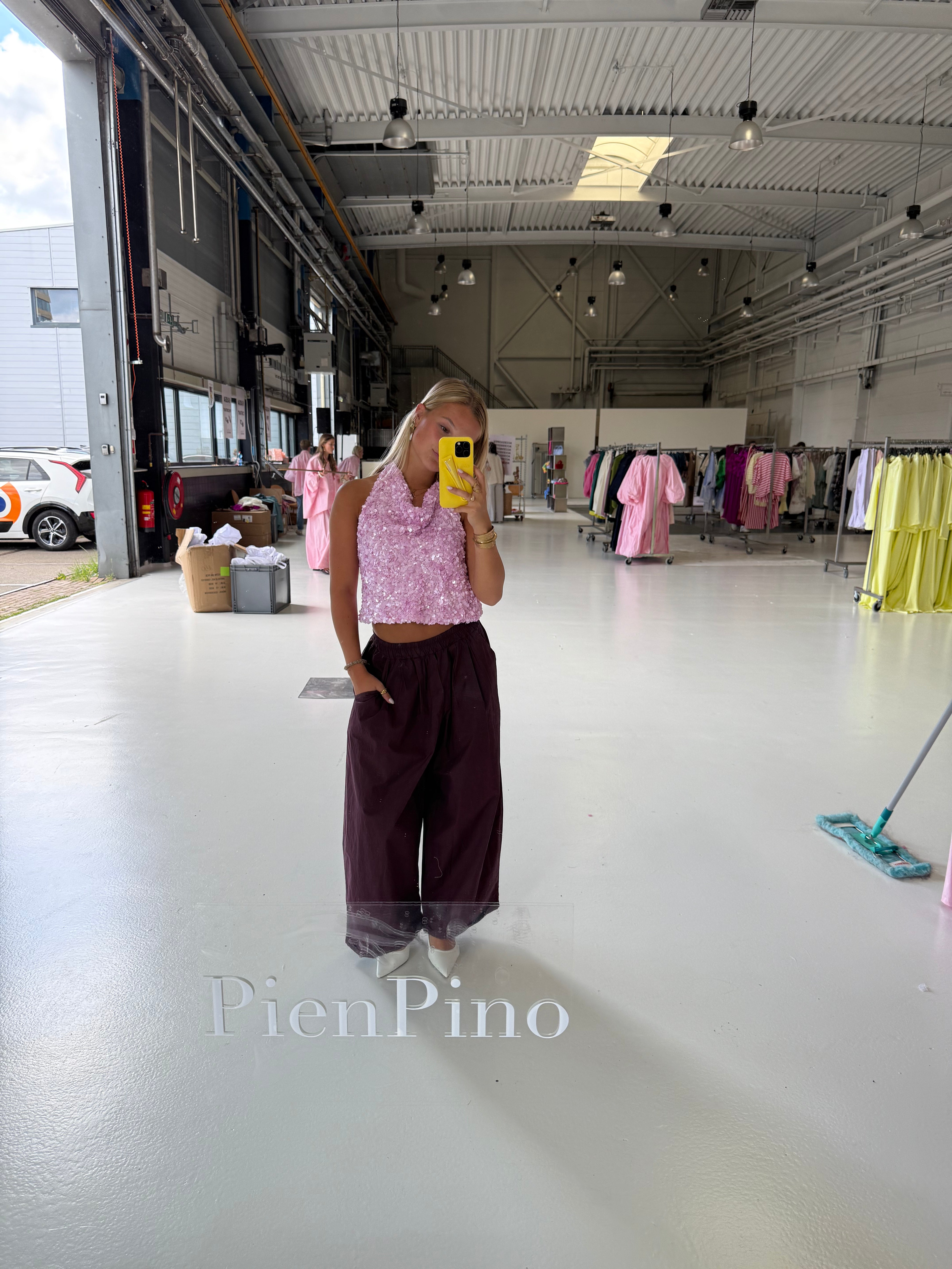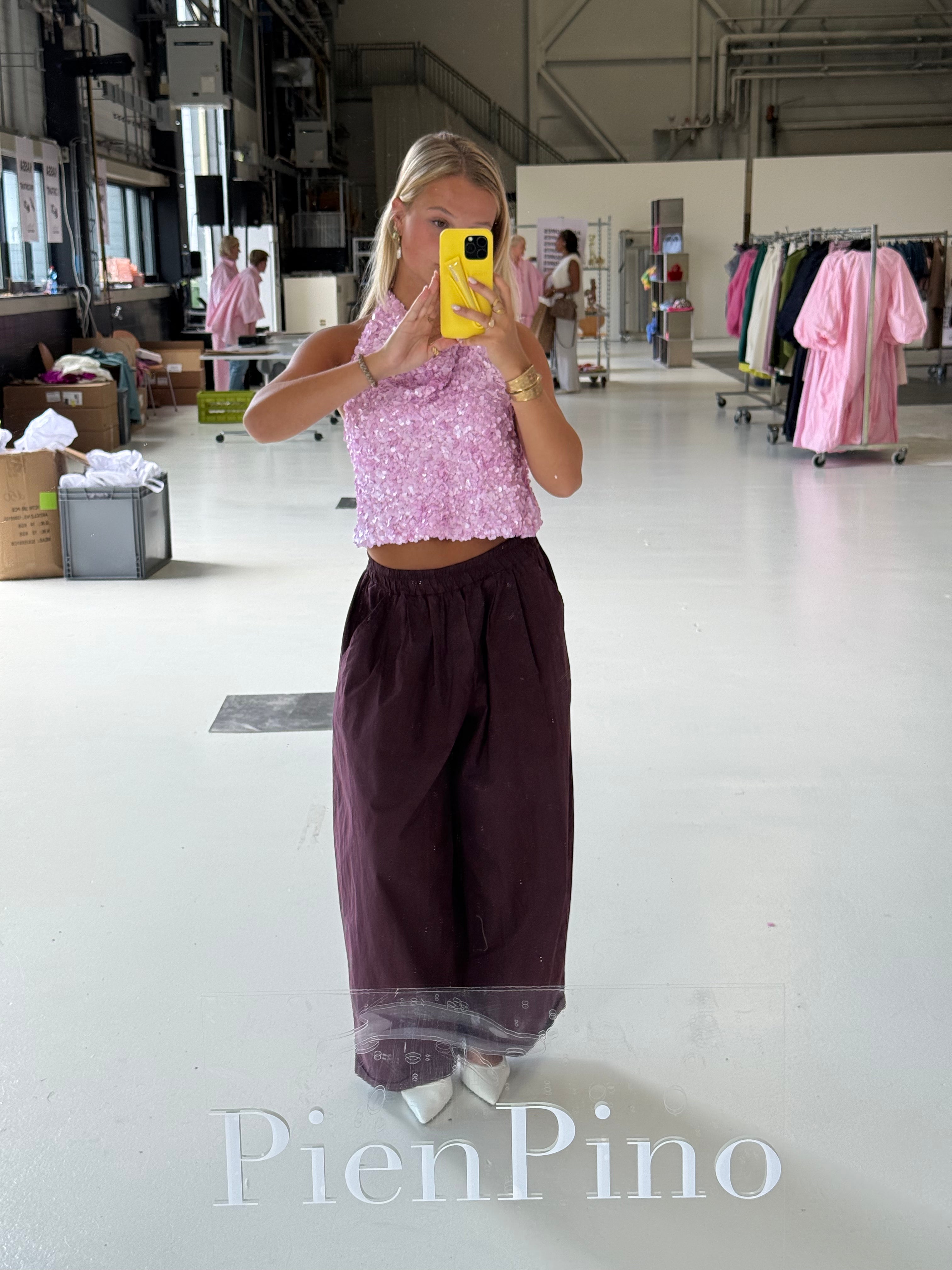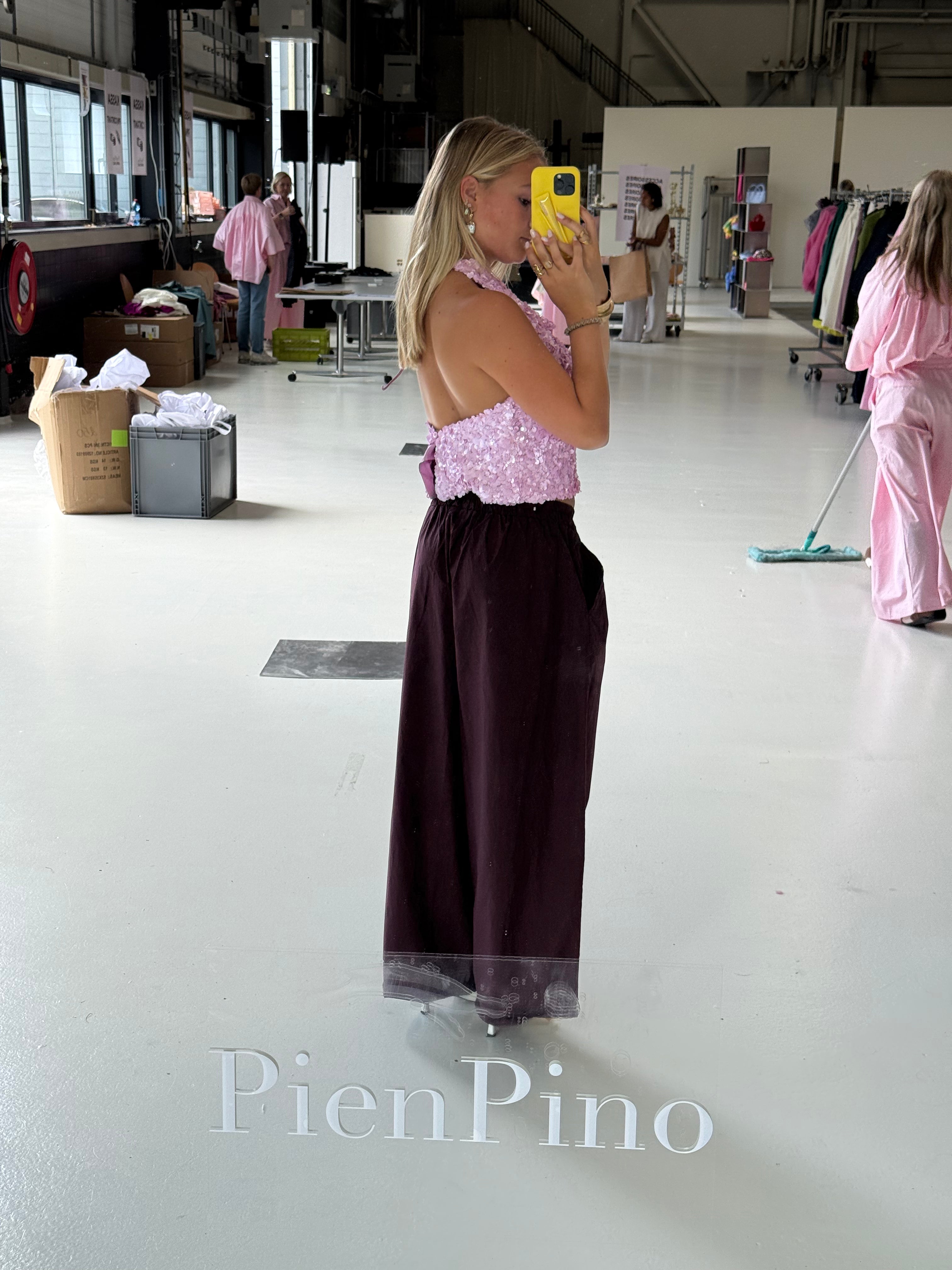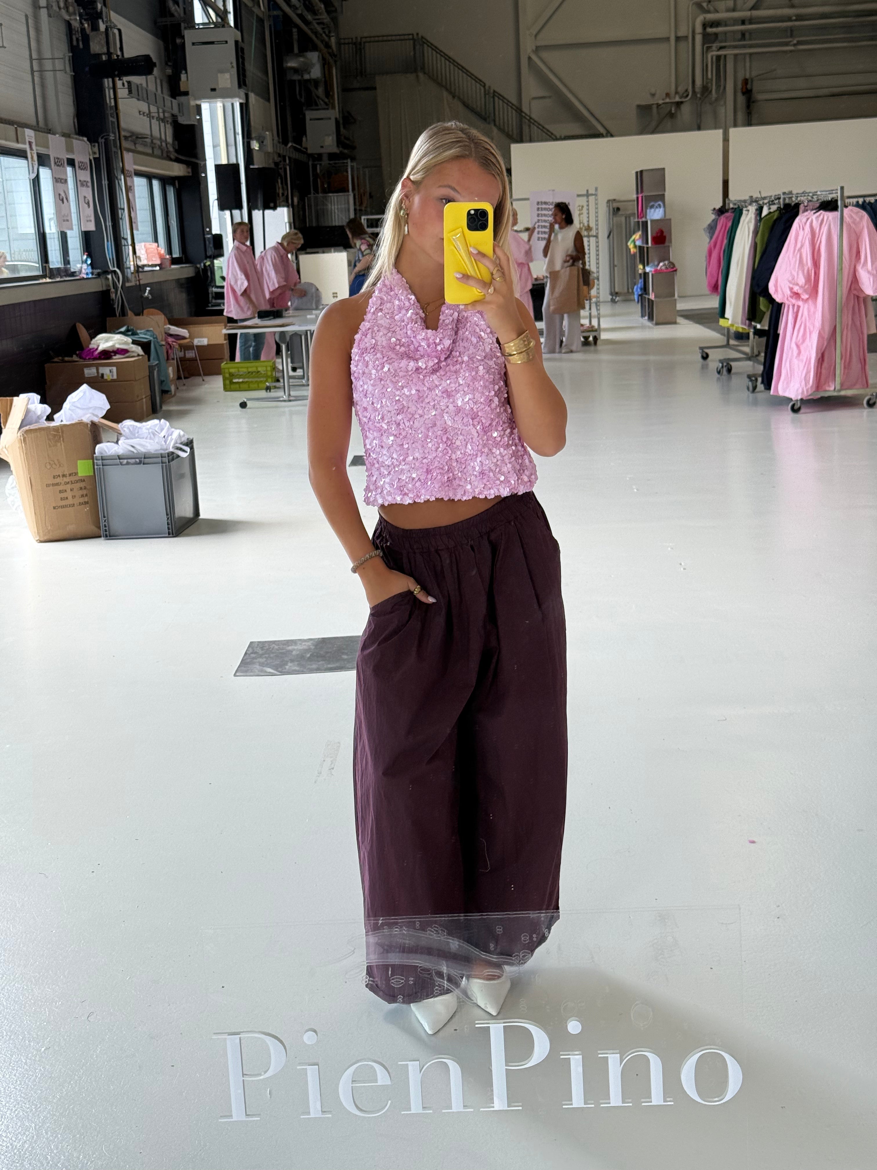 Laat jezelf schitteren met deze prachtige paarse glitter pailletten top – het ultieme statement piece voor wie houdt van glamour. De top is volledig versierd met fonkelende pailletten die in het licht sprankelen en bij elke beweging een betoverend effect geven. De rijke paarse kleur maakt dit item extra bijzonder en geeft je look een chique en feestelijke uitstraling.