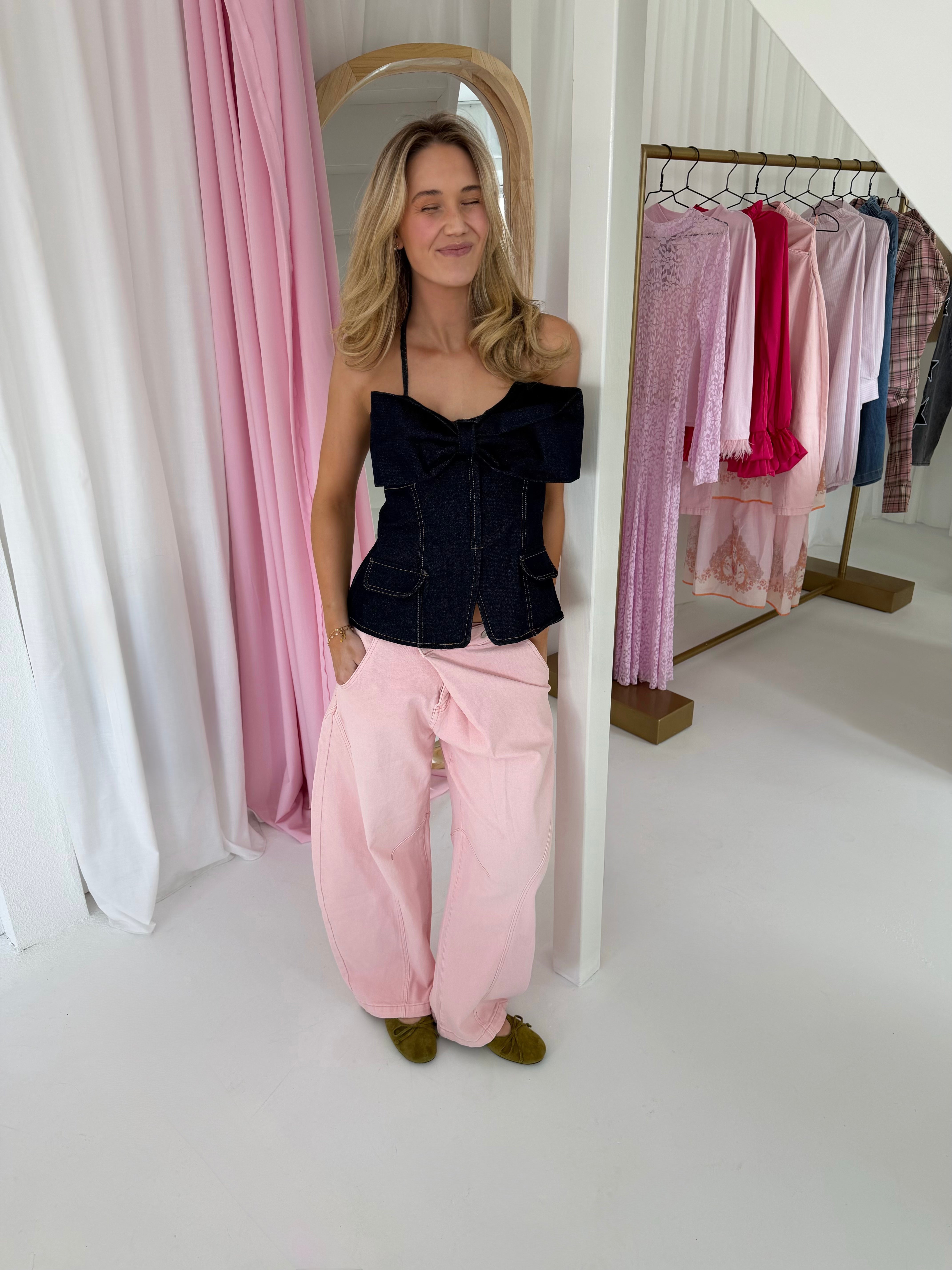 Stefie Jeans in het roze.