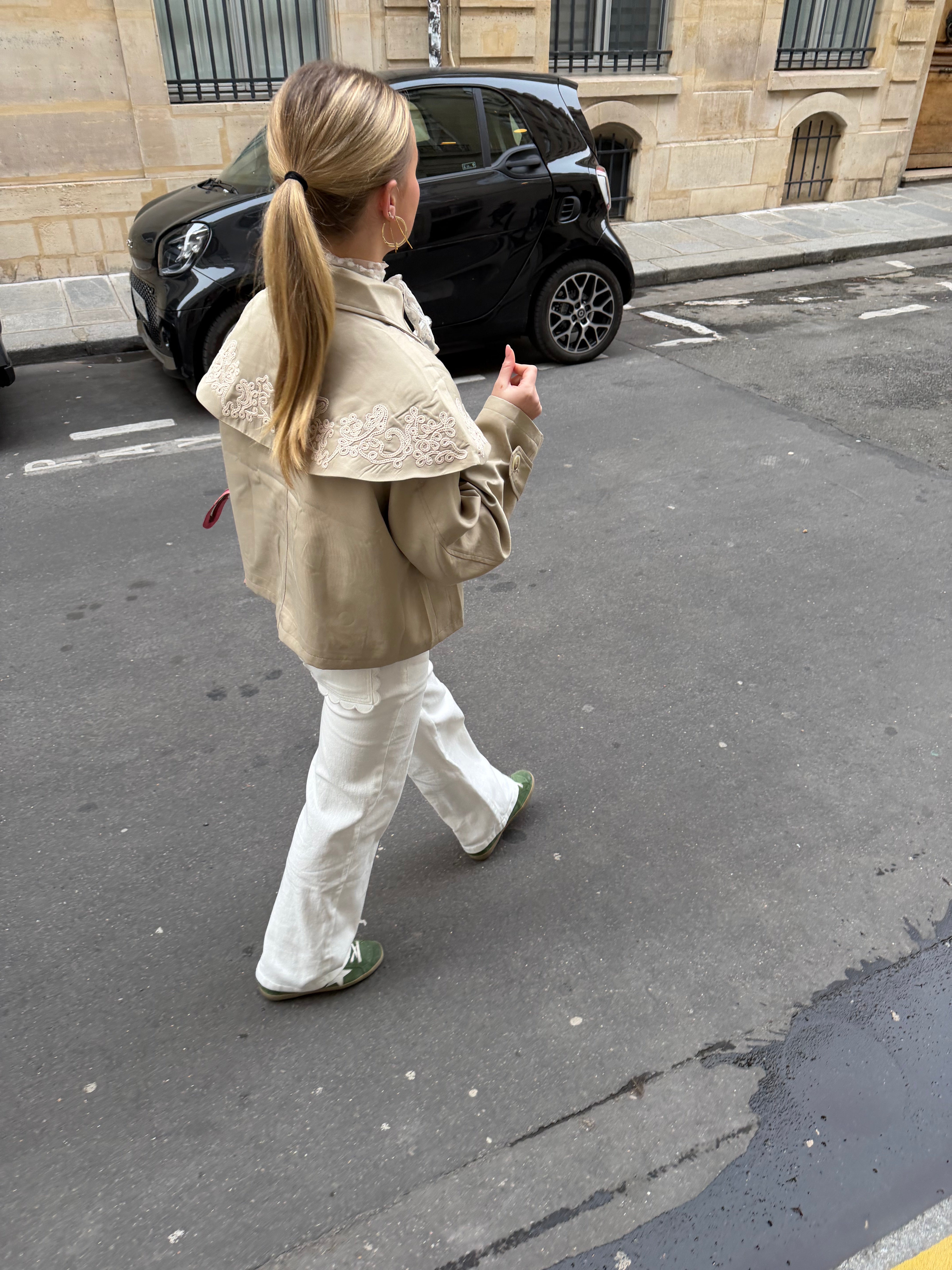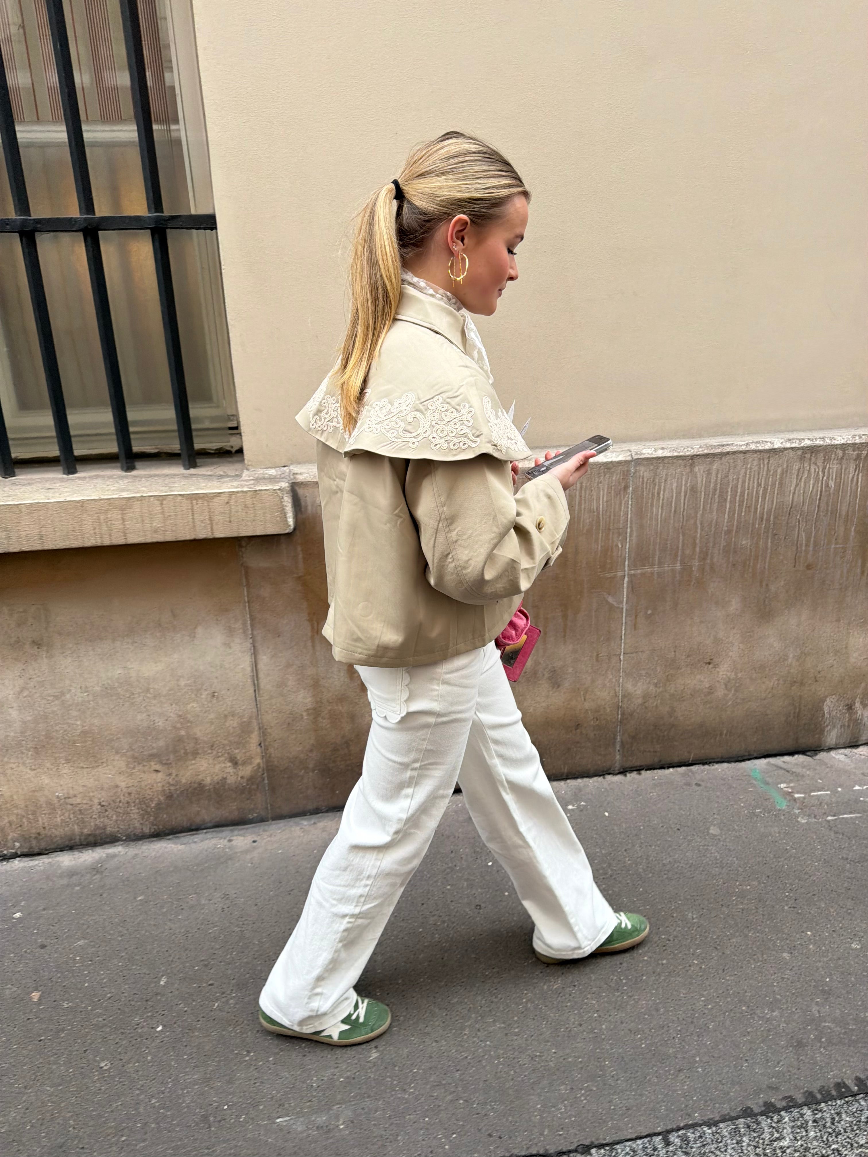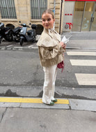 - Het model is 1.68 m lang en draagt een maat S