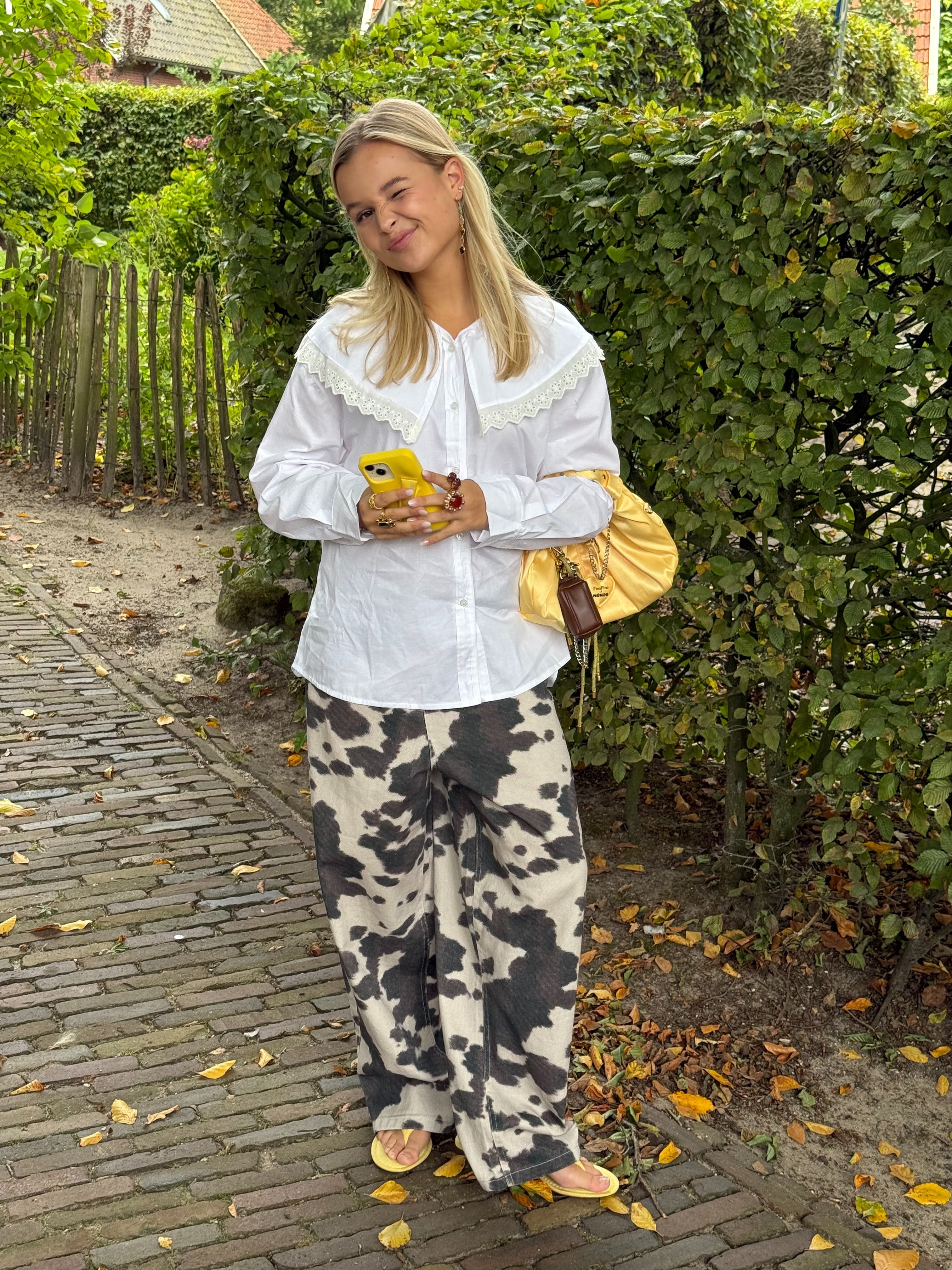 Onze Elise Blouse is het perfecte basisstuk met een vleugje romantiek. De blouse is gemaakt van 100% hoogwaardig katoen en voelt luchtig en zacht aan op de huid. De elegante kraag geeft een subtiele, vrouwelijke touch en maakt dit item zowel klassiek als speels, precies zoals je van PienPino gewend bent.