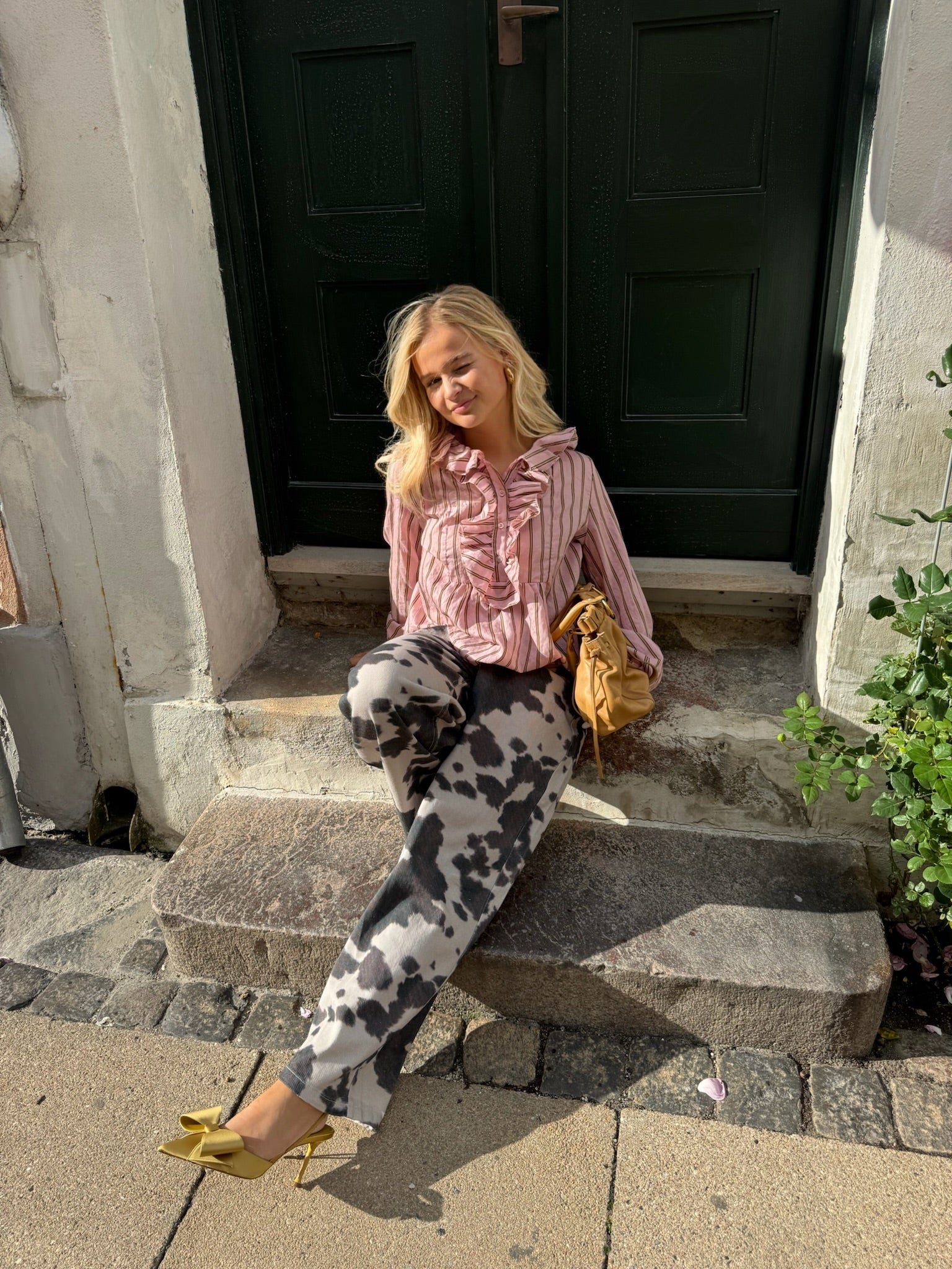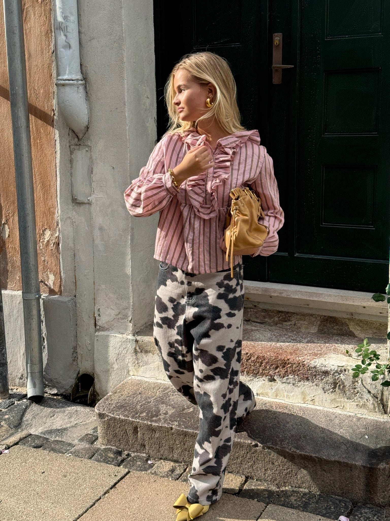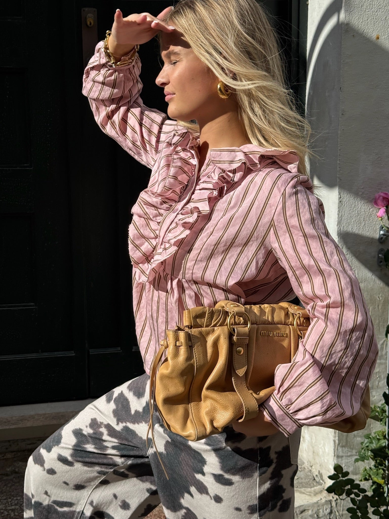 Deze romantische blouse in een zachte roze tint is uitgevoerd met speelse ruffles voor een vrouwelijke en stijlvolle look. Gemaakt van een rijke blend van 56% polyester, 30% viscose en 14% polyamide. De polyestervezels zorgen voor duurzaamheid en vormvastheid, terwijl viscose een zachte en soepele touch geeft. Dankzij de toevoeging van polyamide voelt de blouse extra sterk en comfortabel aan. Een kwaliteitsstuk dat stijl en comfort combineert, perfect voor zowel dagelijks gebruik als speciale gelegenheden.