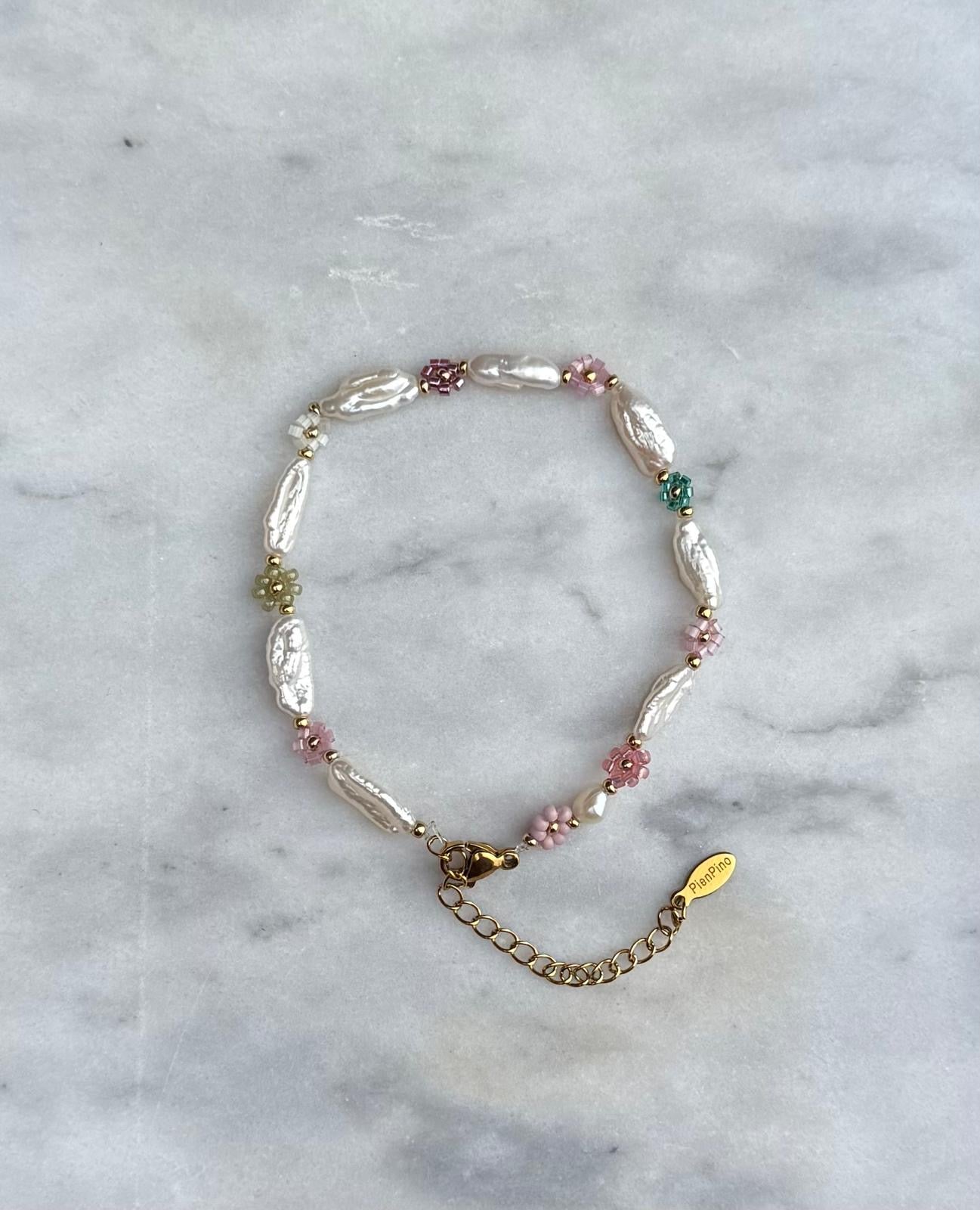 Deze handgemaakte armband is gemaakt uit diverse kralen en heeft een roestvrijstalen afwerking. Dankzij onze handige sluiting is de armband eenvoudig verstelbaar, waardoor hij perfect past voor elke gelegenheid. Elegantie en veelzijdigheid in één uniek sieraad.