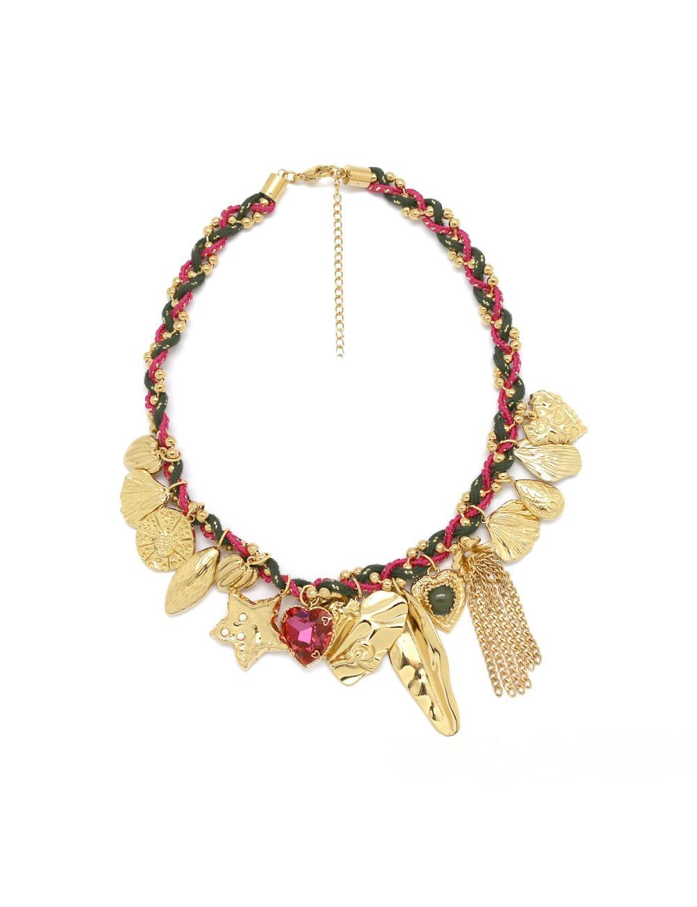 Details: Mix van gouden bedels, speelse symbolen en een robuust, kleurrijk koord