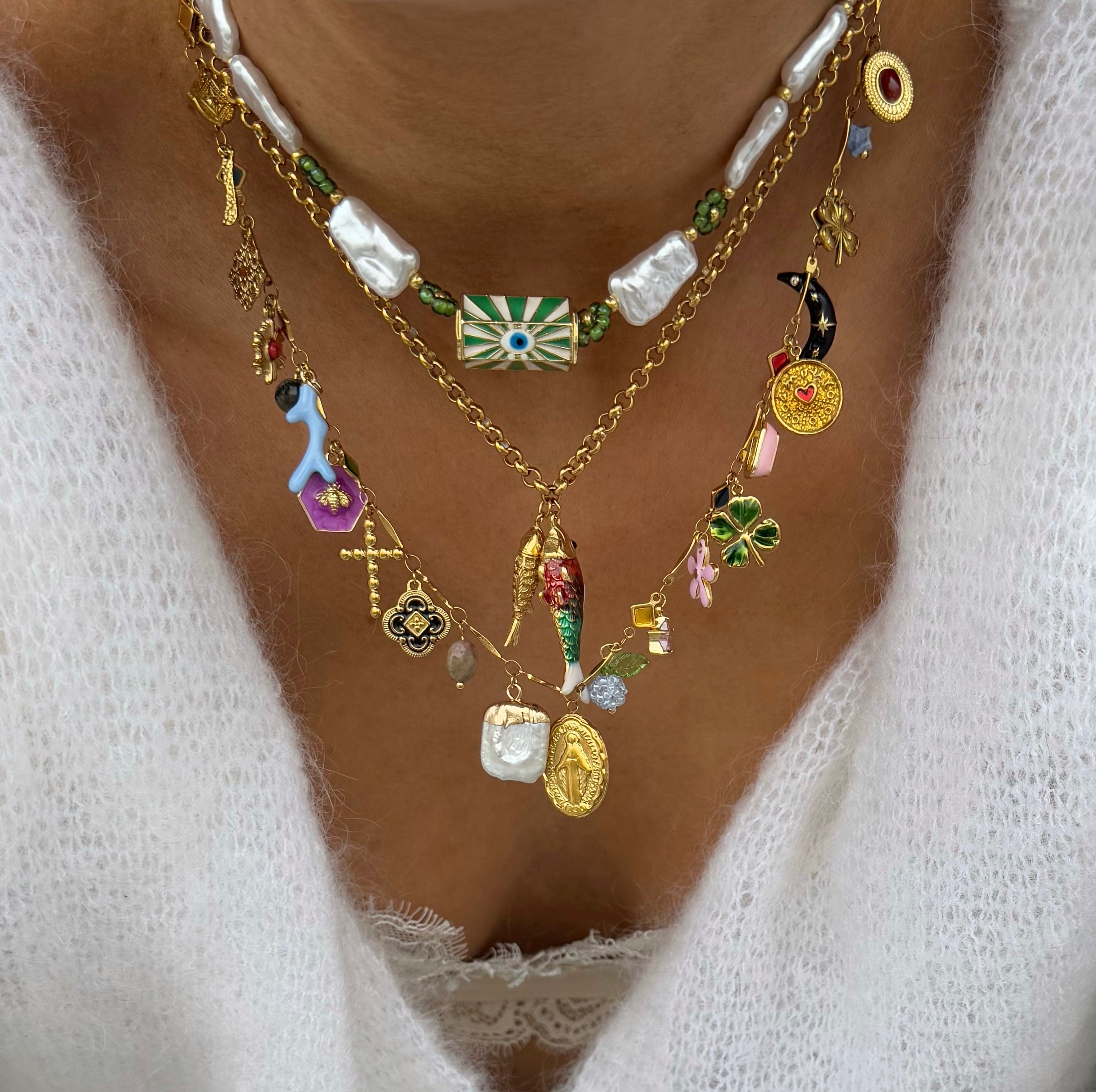 De Cody Necklace is een uniek sieraad dat bestaat uit stevige, opvallende schakels en prachtige bedels. Wat deze ketting echt bijzonder maakt, is het feit dat elk exemplaar uniek is. Elke ketting kan op maat worden gemaakt, waardoor je de mogelijkheid hebt om de bedels en andere elementen aan te passen, zodat jouw ketting volledig aan jouw persoonlijke smaak en stijl voldoet. Hierdoor krijg je een prachtig sieraad.
