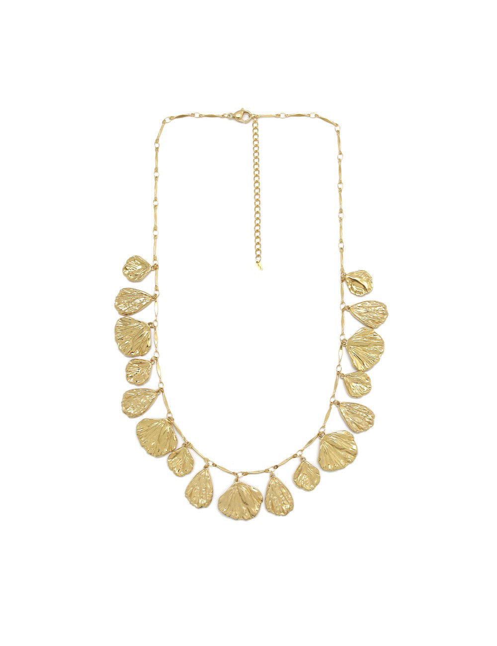 De Estelle Necklace straalt natuurlijke elegantie uit. Deze gouden stainless steel ketting is versierd met verfijnde bedels in de vorm van blaadjes, die subtiel meebewegen en het licht op een prachtige manier vangen.