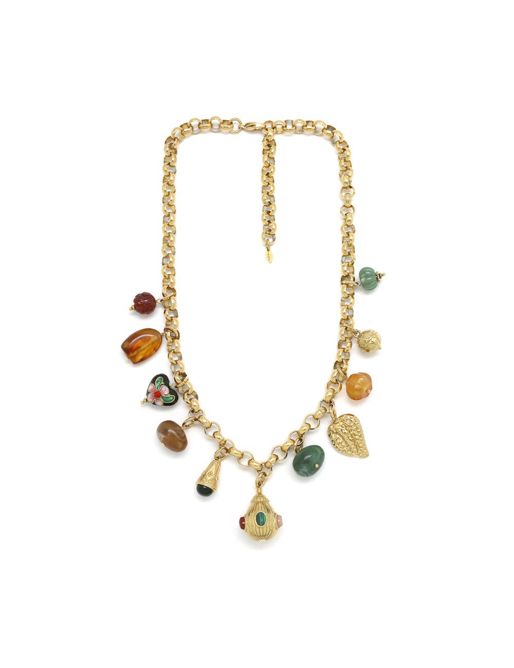 De Féline Necklace is een echte eyecatcher, een gouden stainless steel ketting versierd met bedels in prachtige kleuren die elke outfit tot leven brengen.
