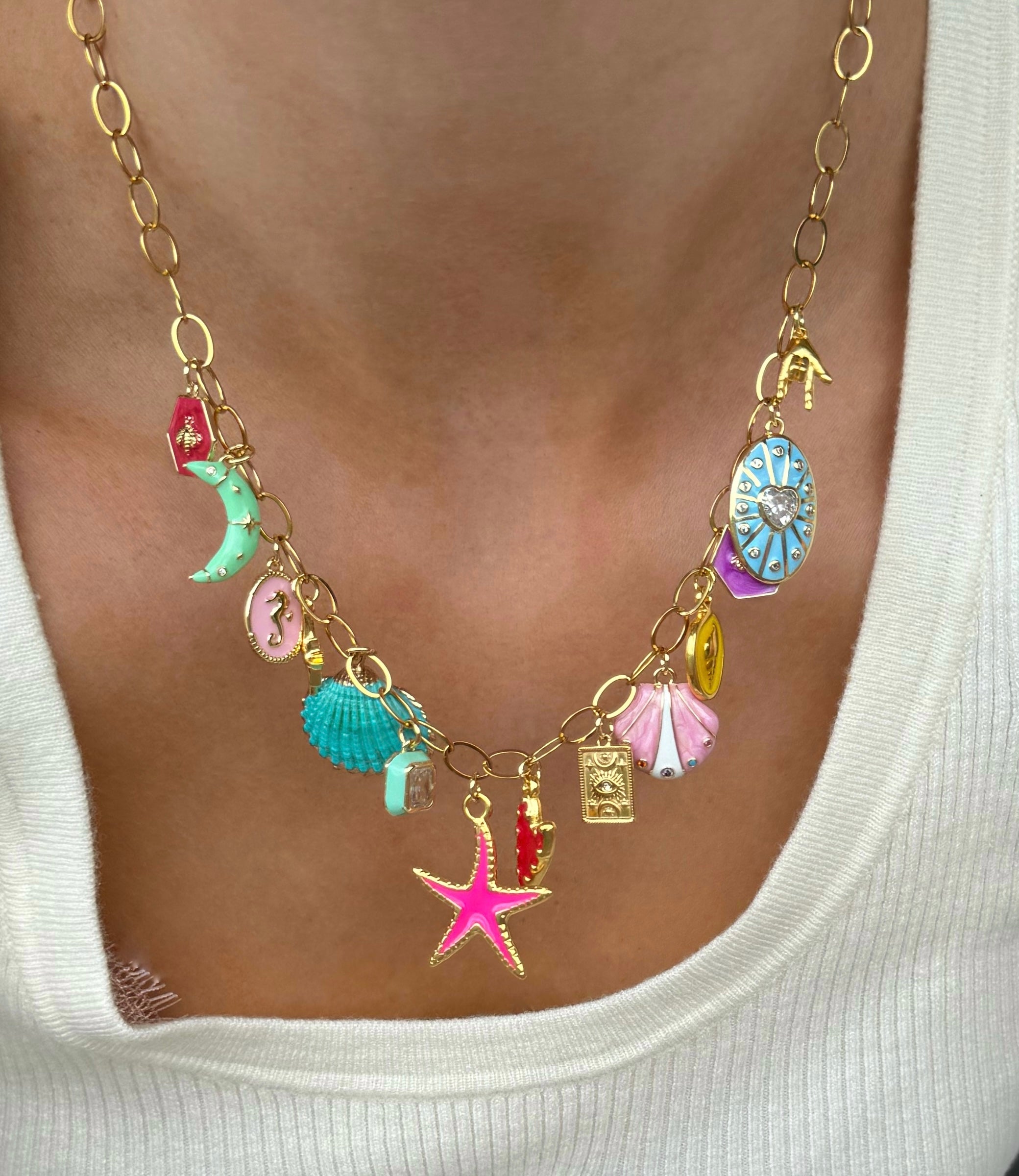De Fien Necklace is een uniek sieraad dat bestaat uit stevige, opvallende schakels en prachtige bedels. Wat deze ketting echt bijzonder maakt, is het feit dat elk exemplaar uniek is. Elke ketting kan op maat worden gemaakt, waardoor je de mogelijkheid hebt om de bedels en andere elementen aan te passen, zodat jouw ketting volledig aan jouw persoonlijke smaak en stijl voldoet. Hierdoor krijg je een prachtig sieraad.