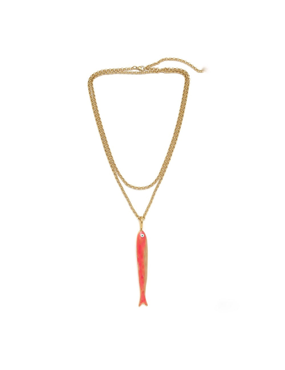 Breng een opvallend accent aan je outfit met deze neonroze visketting. Deze statement ketting combineert speelsheid met elegantie en is een echte blikvanger voor elke gelegenheid. De ketting is vervaardigd uit hoogwaardig roestvrij staal, waardoor hij niet alleen stijlvol maar ook duurzaam is.