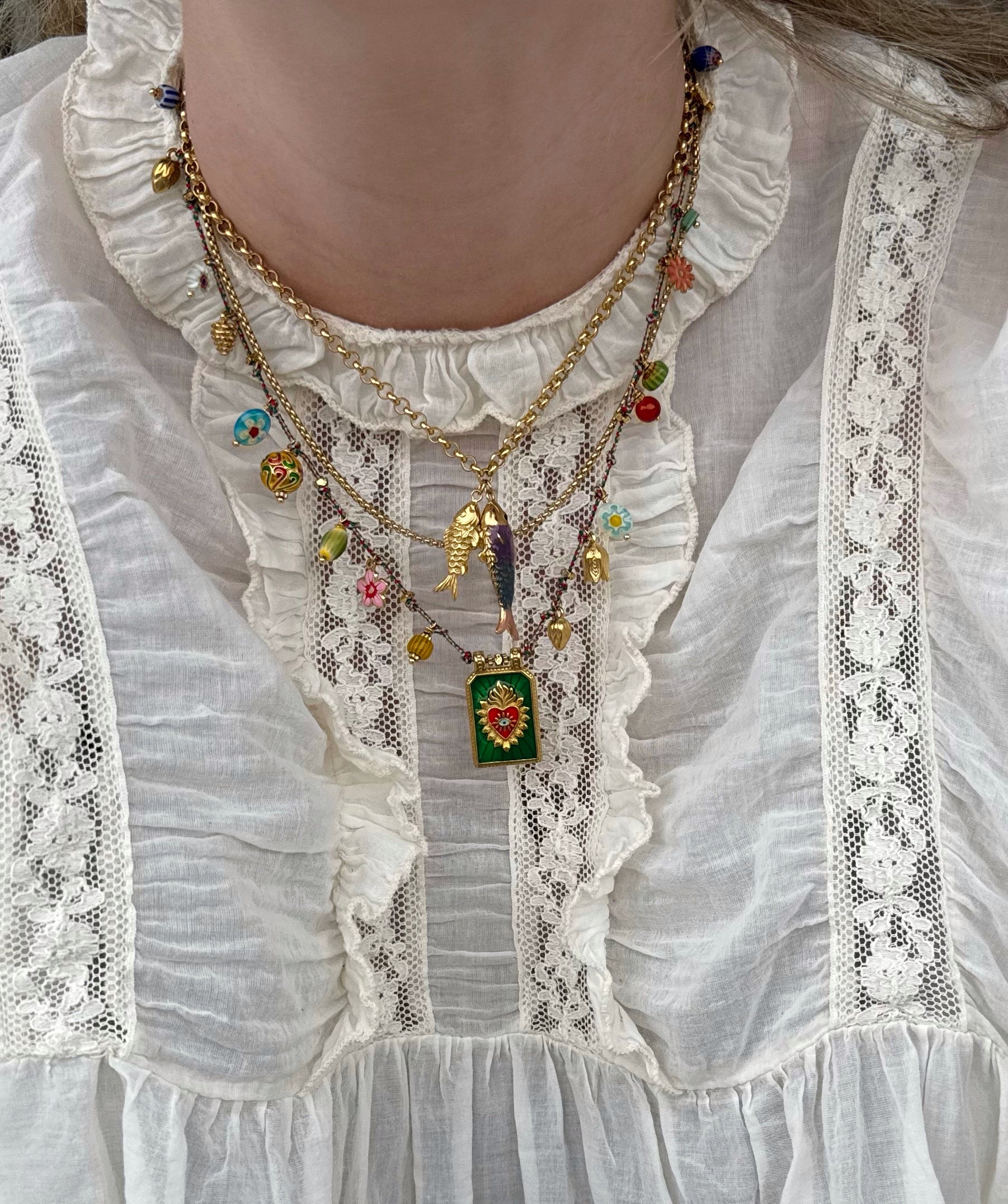 Maak kennis met onze Charm Necklace Collection, waar elke ketting een speelse mix van unieke bedels bevat die jouw look helemaal afmaken! Deze charmante kettingen voegen net dat beetje extra flair toe aan je outfit. Of je nu houdt van een subtiel statement of een iets gedurfdere stijl, er is altijd wel een charm necklace die perfect bij je past.
