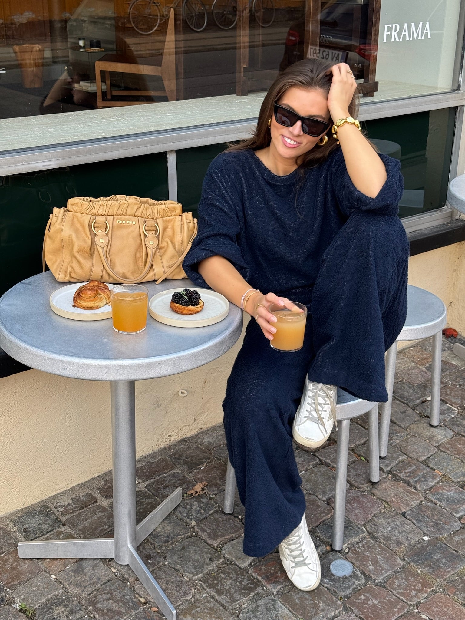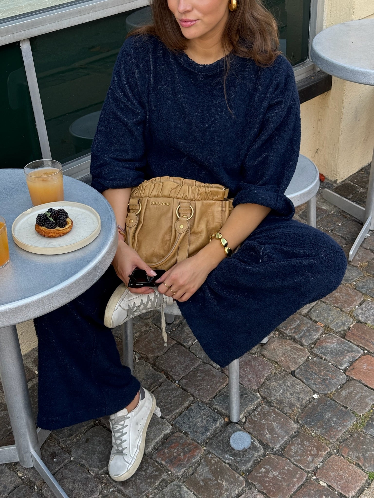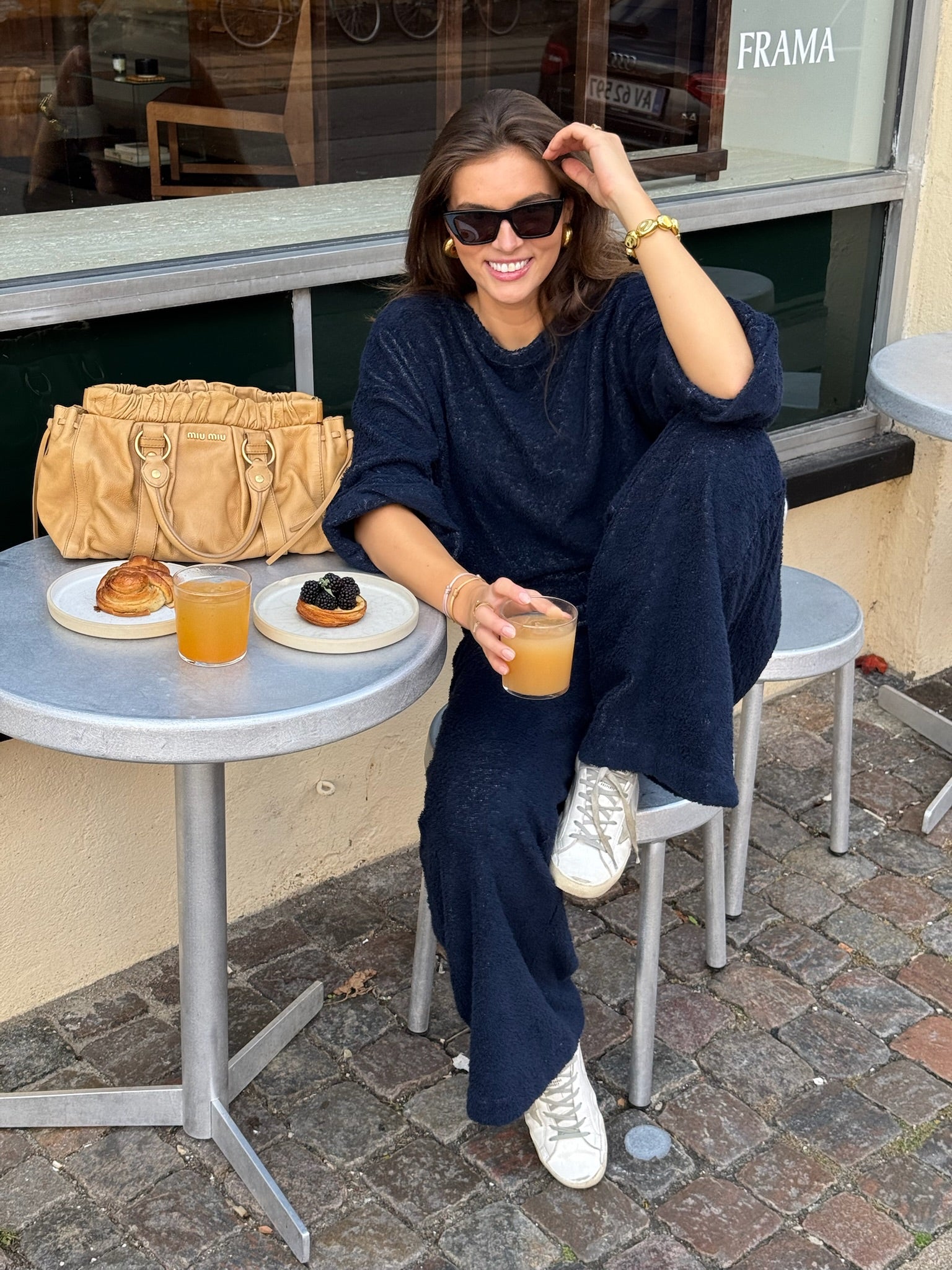 Dit stijlvolle ensemble is ideaal voor zowel formele gelegenheden als chique casual looks, en voegt een vleugje moderne klasse toe aan iedere garderobe. Uitsluitend met de hand wassen om de zachtheid, kleur en kwaliteit van de stof te behouden.