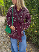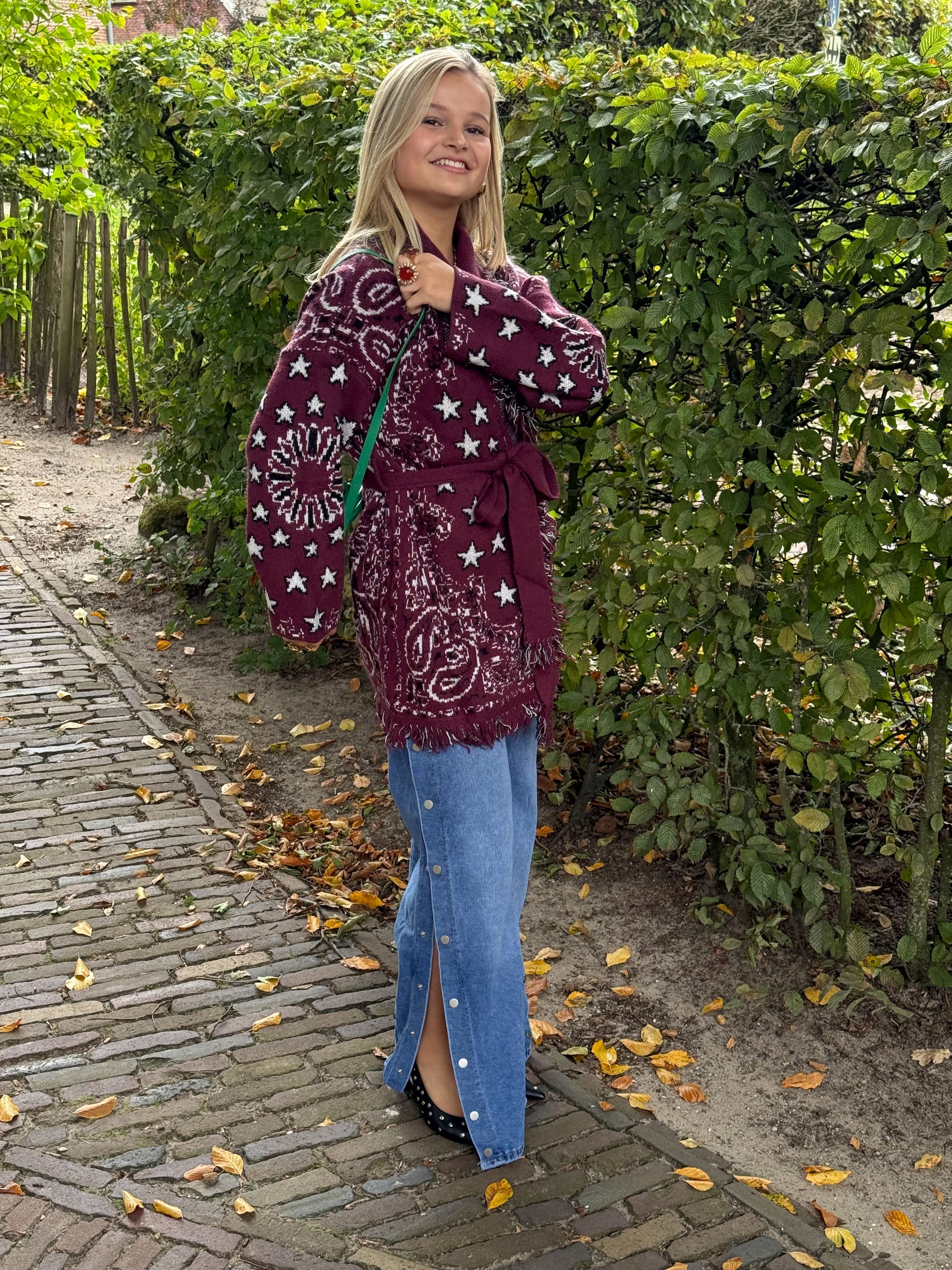 Een prachtig vest dat zachtheid en elegantie uitstraalt. Vervaardigd uit een luxe mix van 52% acryl, 28% polyamide en 20% elasthaan omhult het je als een zachte omhelzing. De verfijnde print geeft het vest een dromerige, romantische uitstraling, terwijl het bijpassende ceintuur subtiel je taille accentueert en een sierlijk silhouet creëert. Perfect om je look een vrouwelijke en elegante touch te geven.