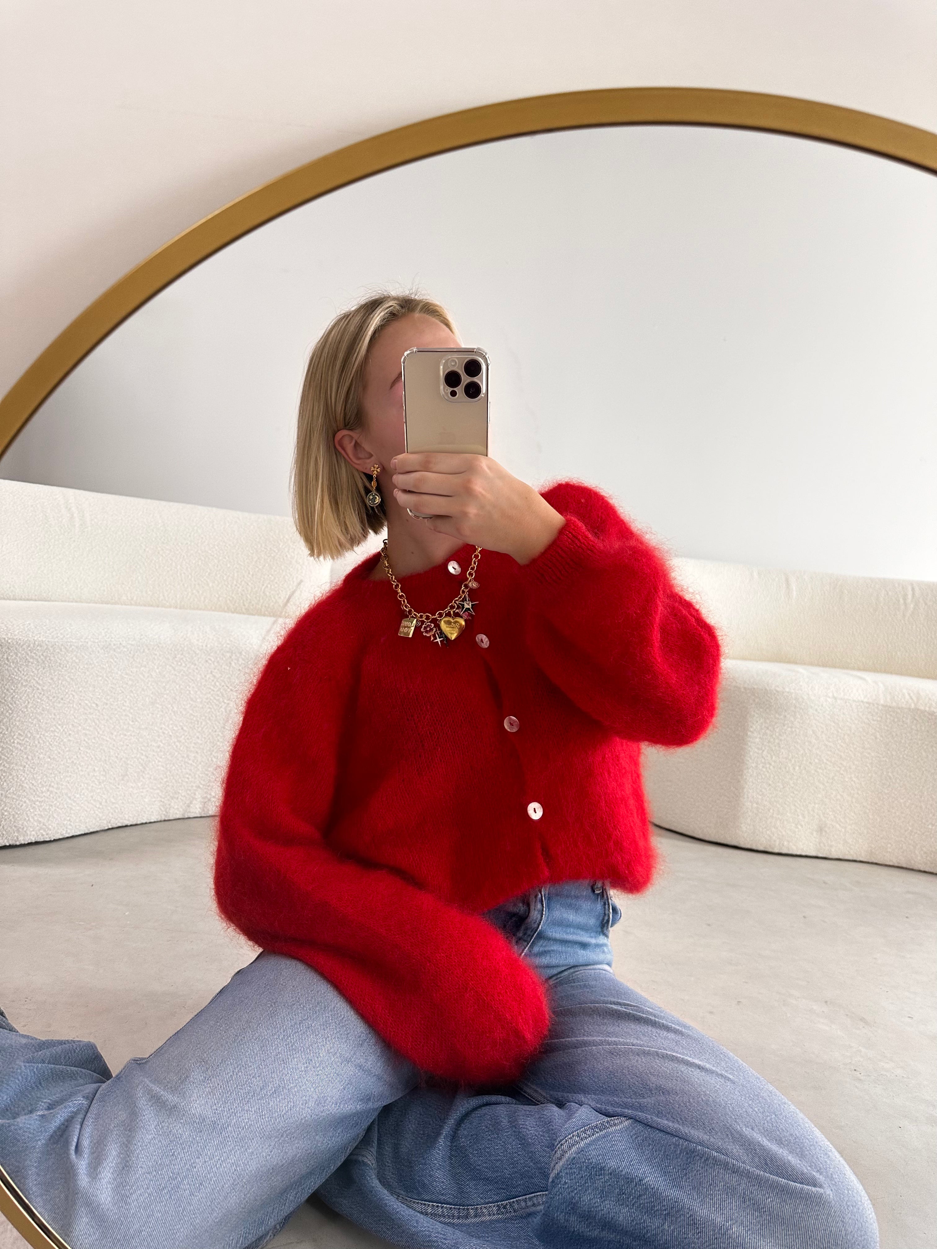 Ontdek de Love You Cardigan❤️, een prachtig rood vestje dat jouw stijl naar nieuwe hoogten tilt! Gemaakt met dezelfde zorgvuldige selectie van materialen, combineert dit vestje een verleidelijke rode kleur met een luxueuze samenstelling van 6% mohair, 18% polyamide, 4% wol en 2% elastaan. Met zijn tijdloze one-size design past de Love You Cardigan moeiteloos bij elke lichaamsvorm, waardoor het een veelzijdige keuze is voor elke gelegenheid. Of je nu jezelf wilt verwennen voor een speciale gebeurtenis of gewoon op zoek bent naar een vleugje elegantie in je dagelijkse outfit, dit vestje biedt comfort en stijl in gelijke mate. Omarm de kracht van verfijning en laat de Love You Cardigan jouw nieuwe favoriete kledingstuk zijn, waarmee je moeiteloos de perfecte look creëert✨.