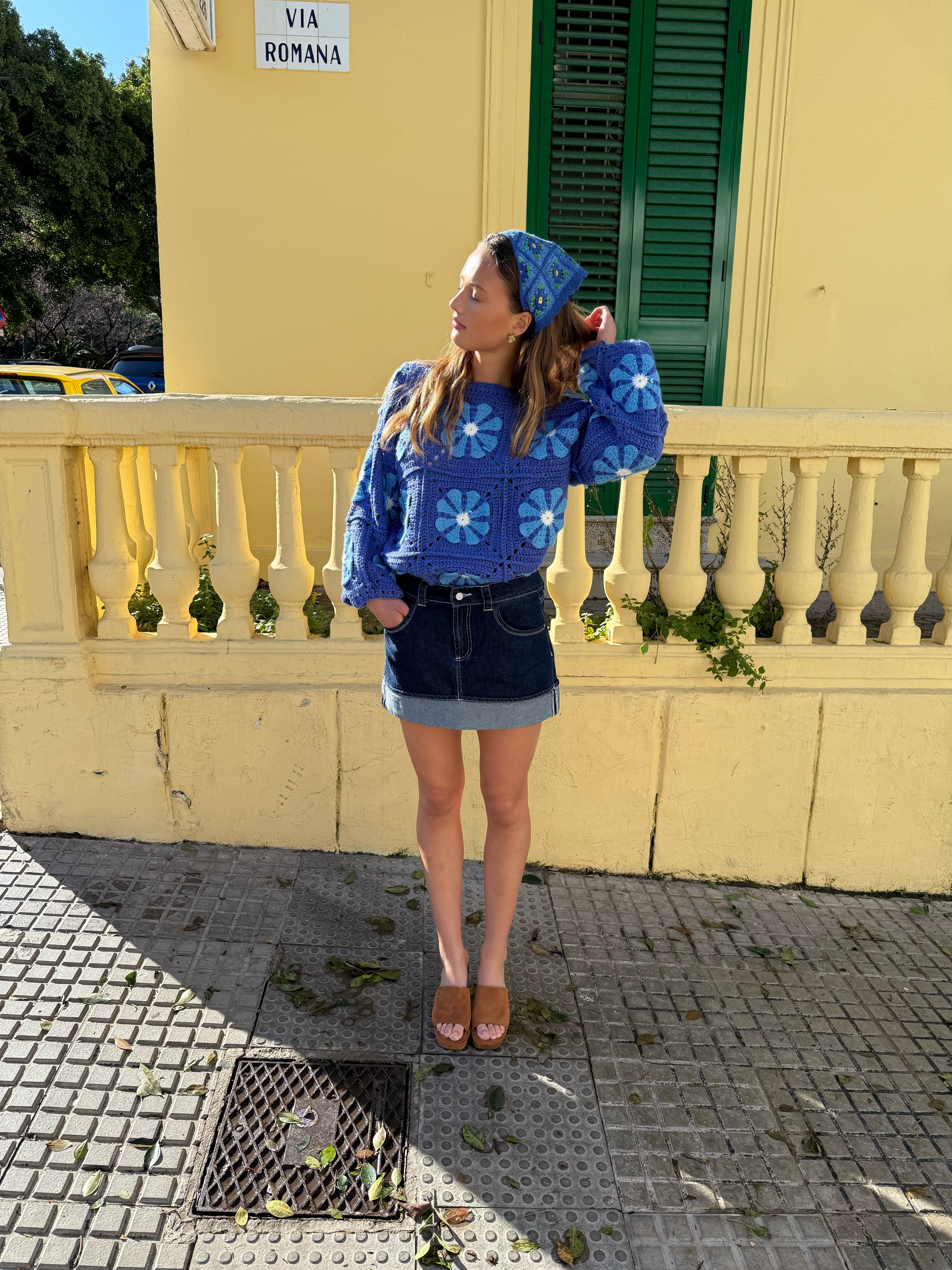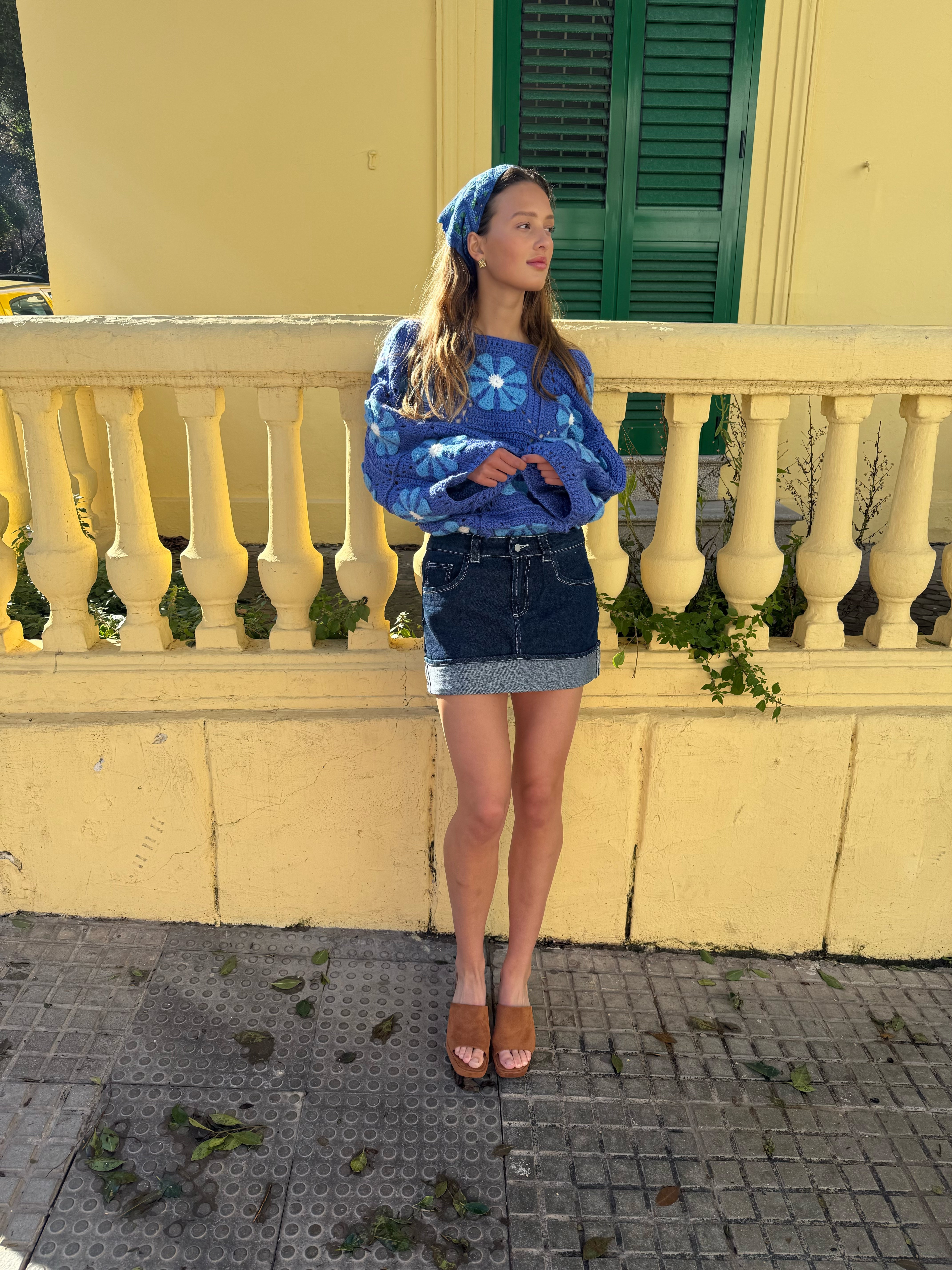 Deze prachtige denim skirt is een echte must-have voor een stoere, maar stijlvolle look! De stiksel details geven de rok een edgy en opvallende uitstraling, terwijl de omgeslagen onderkant het geheel een extra stoere touch geeft. De klassieke denim look wordt hierdoor op een moderne manier naar voren gebracht, perfect voor zowel casual als meer geklede outfits. Verkrijgbaar in S/M M/L.