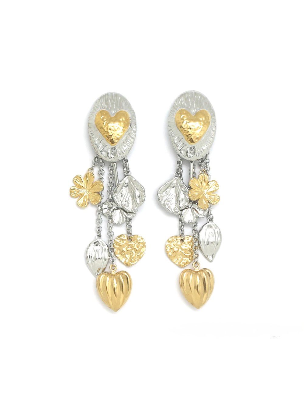 De Lucky Charms Earrings zijn speelse statement-oorbellen vol symboliek en glans. Het design combineert een mix van gouden en zilveren bedels – waaronder hartjes, klavertjes en organische vormen – die sierlijk bungelen aan fijne kettinkjes. Dankzij de combinatie van zilver- en goudkleurig roestvrij staal zijn de oorbellen makkelijk te matchen met al je favoriete sieraden.