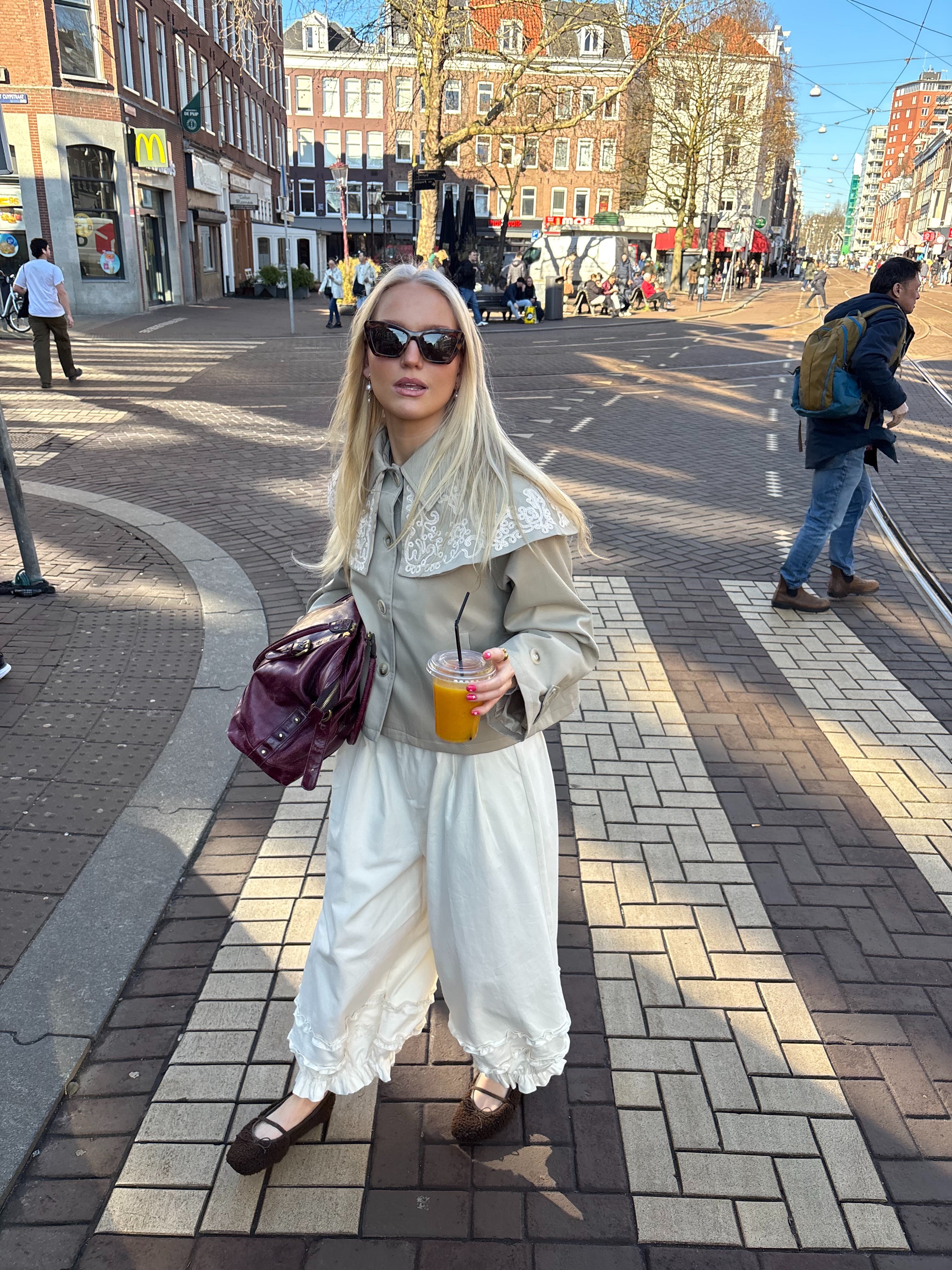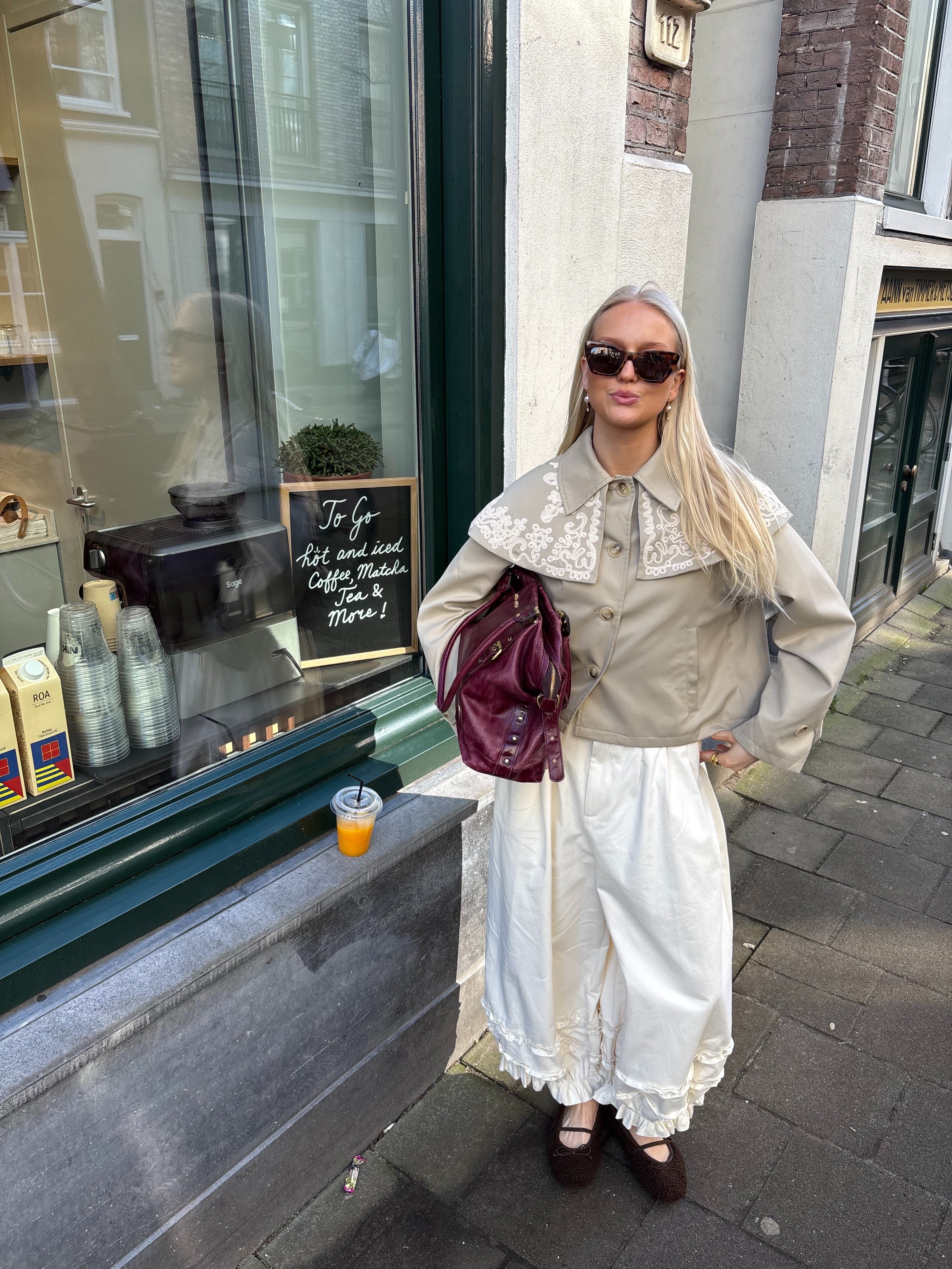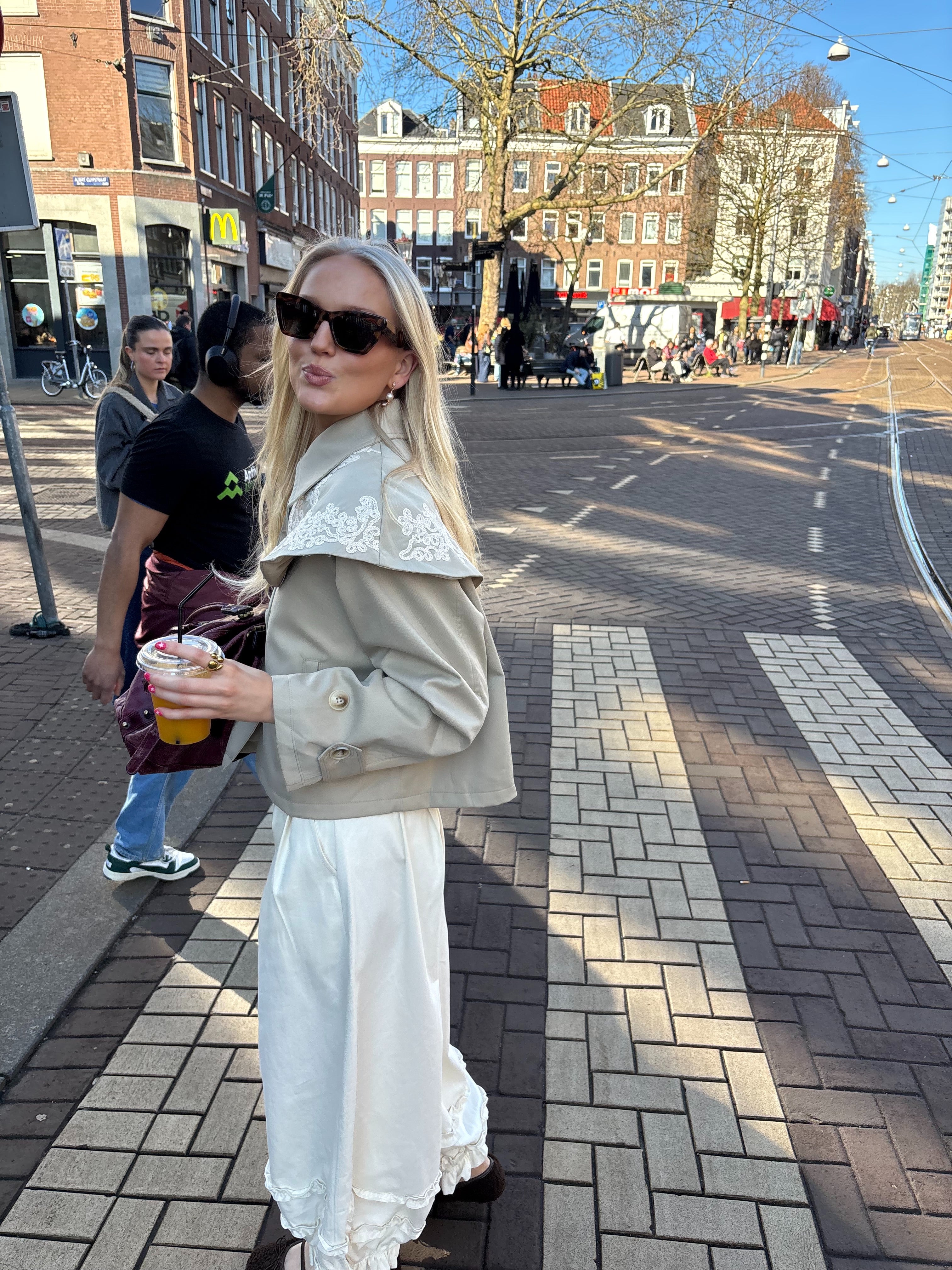 De Lulu Jacket is een stijlvolle beige jacket met een subtiel streeppatroon en mooie details.