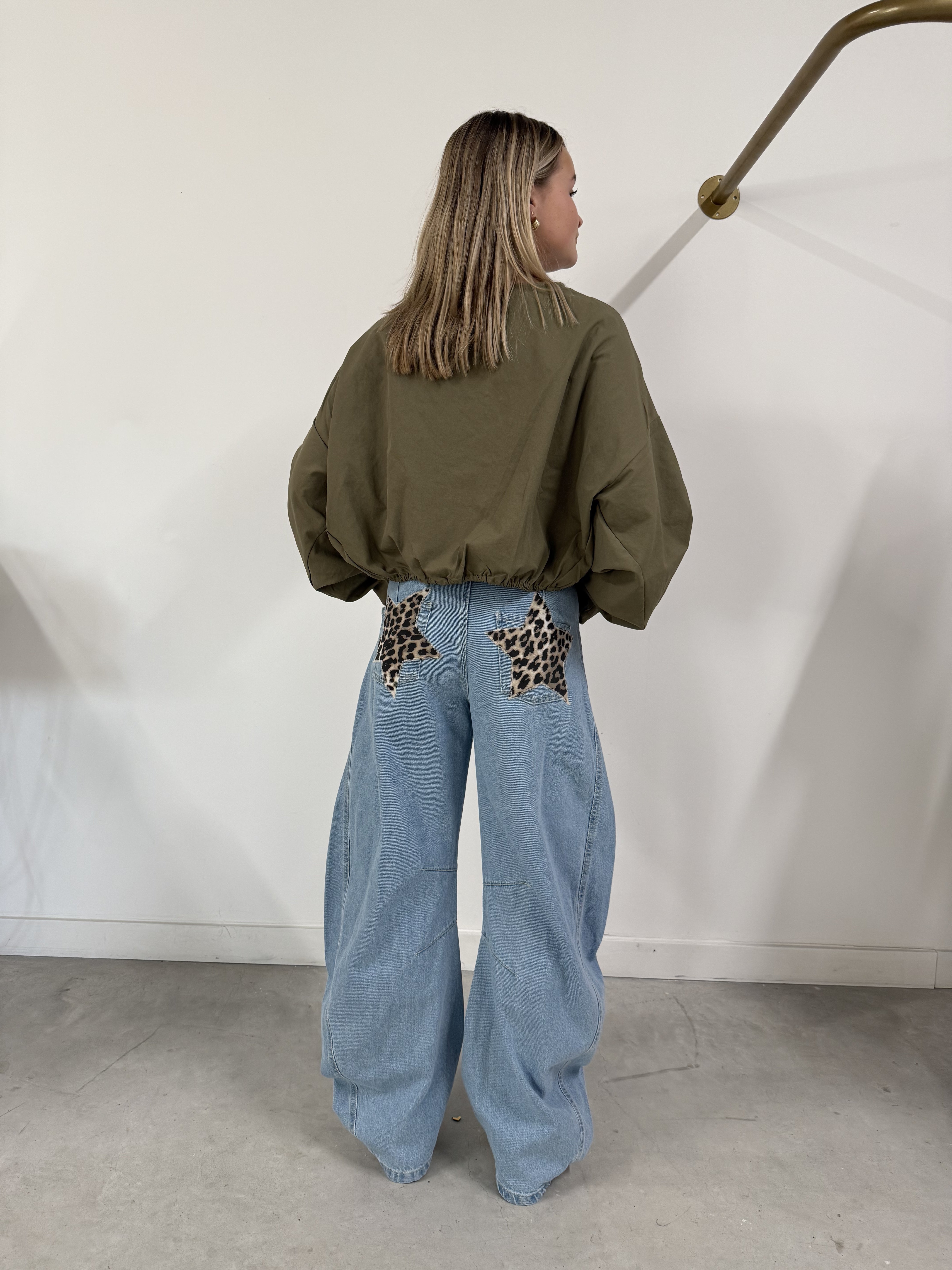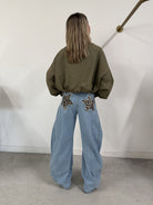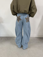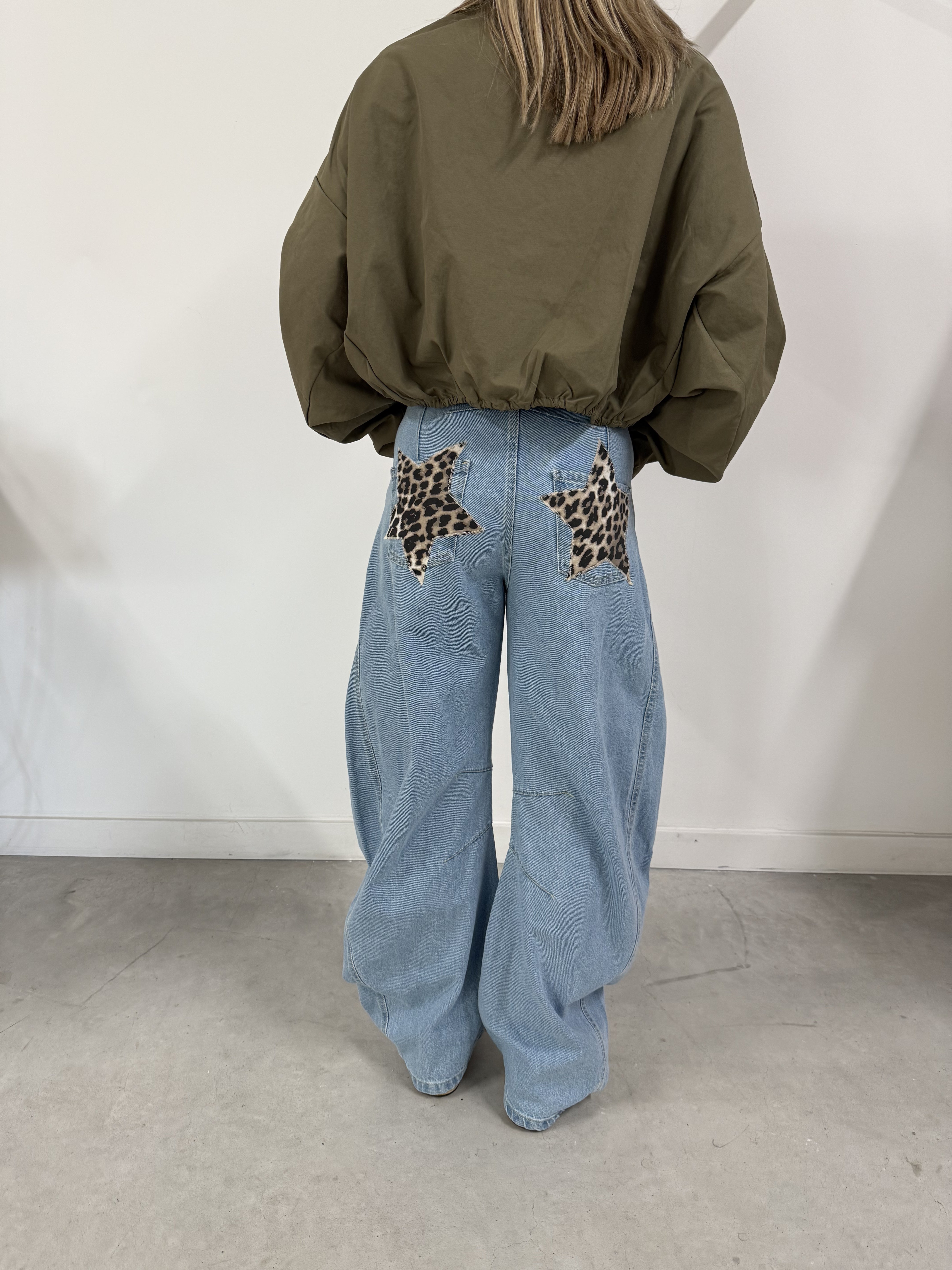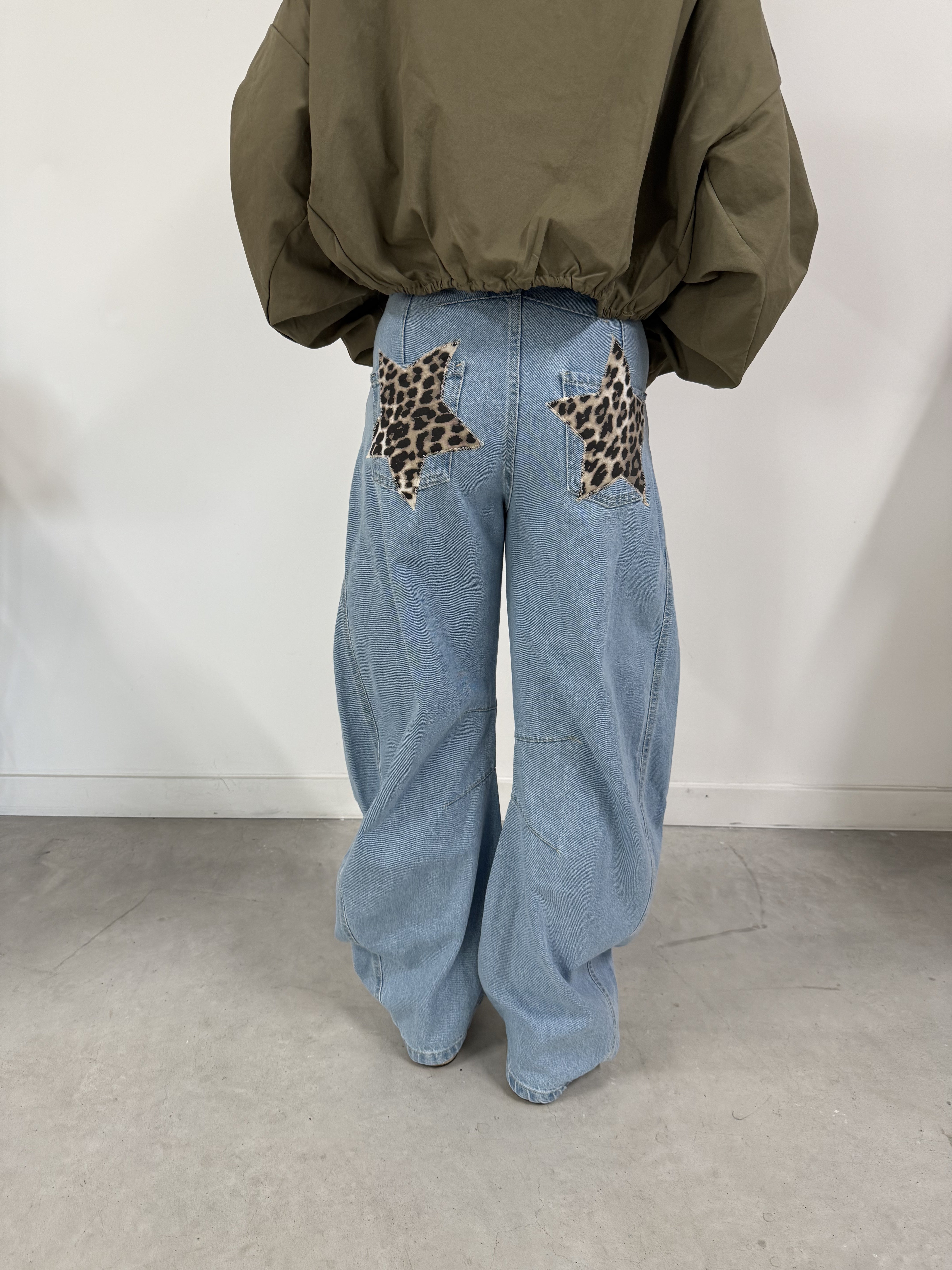 Voeg een unieke flair toe aan je garderobe met onze limited edition wide fitting jeans! Deze spijkerbroek is niet zomaar een basisitem; de handgemaakte sterren op de achterzakken maken het een echt statement stuk. Perfect voor de modebewuste vrouw die op zoek is naar iets speciaals.