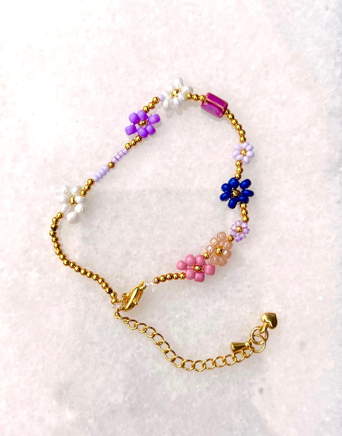 Deze handgemaakte armband is gemaakt uit diverse kralen en heeft een roestvrijstalen afwerking. Dankzij onze handige sluiting is de armband eenvoudig verstelbaar, waardoor hij perfect past voor elke gelegenheid. Elegantie en veelzijdigheid in één uniek sieraad.