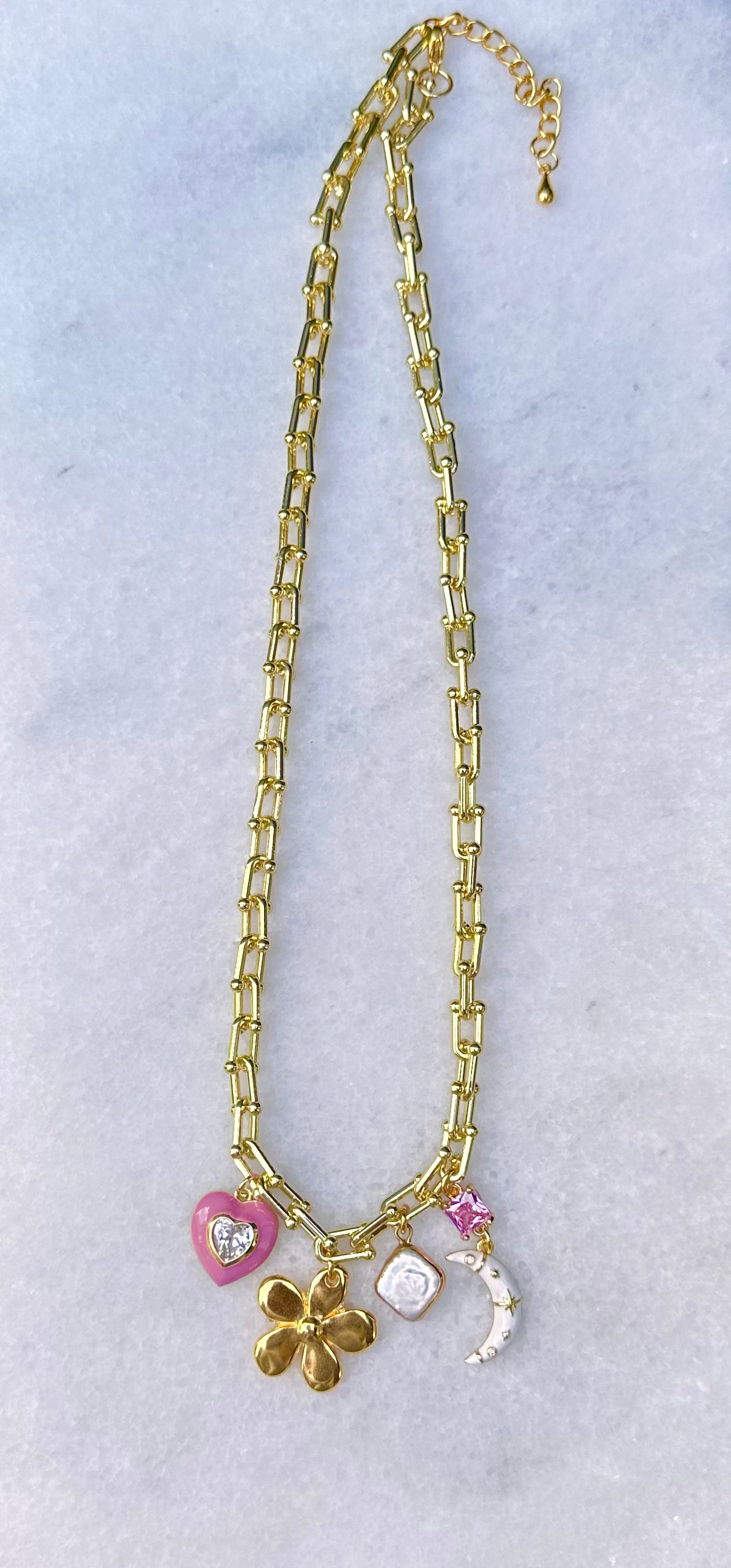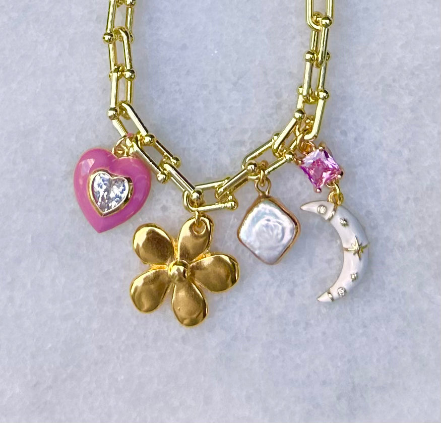 De Cute Moon Necklace is een uniek sieraad dat bestaat uit stevige, opvallende schakels en prachtige bedels. Wat deze ketting echt bijzonder maakt, is het feit dat elk exemplaar uniek is. Elke ketting kan op maat worden gemaakt, waardoor je de mogelijkheid hebt om de bedels en andere elementen aan te passen, zodat jouw ketting volledig aan jouw persoonlijke smaak en stijl voldoet. Hierdoor krijg je een prachtig sieraad.