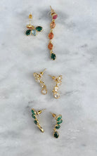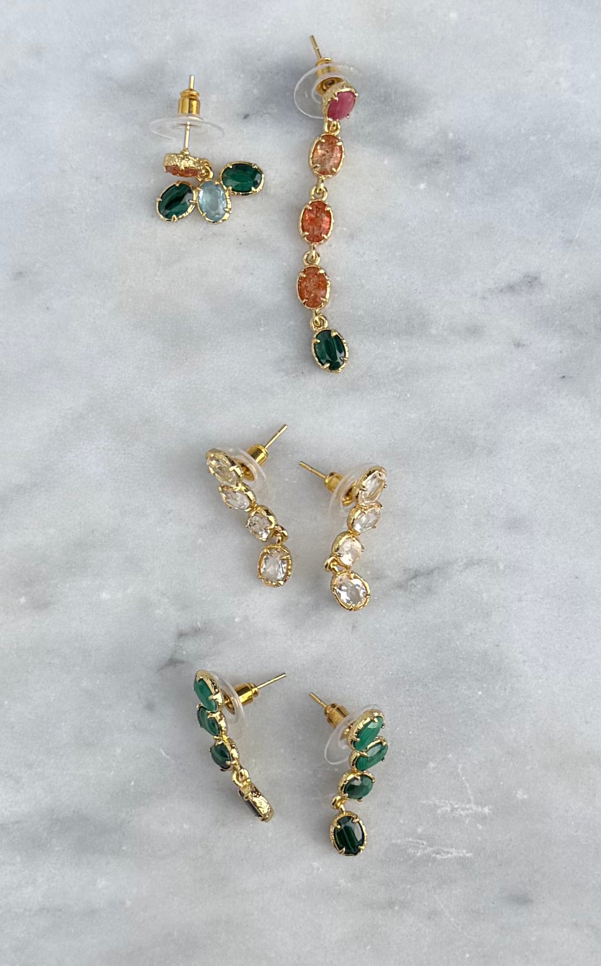 • Gemaakt van fijn verguld messing met groene natuurstenen.