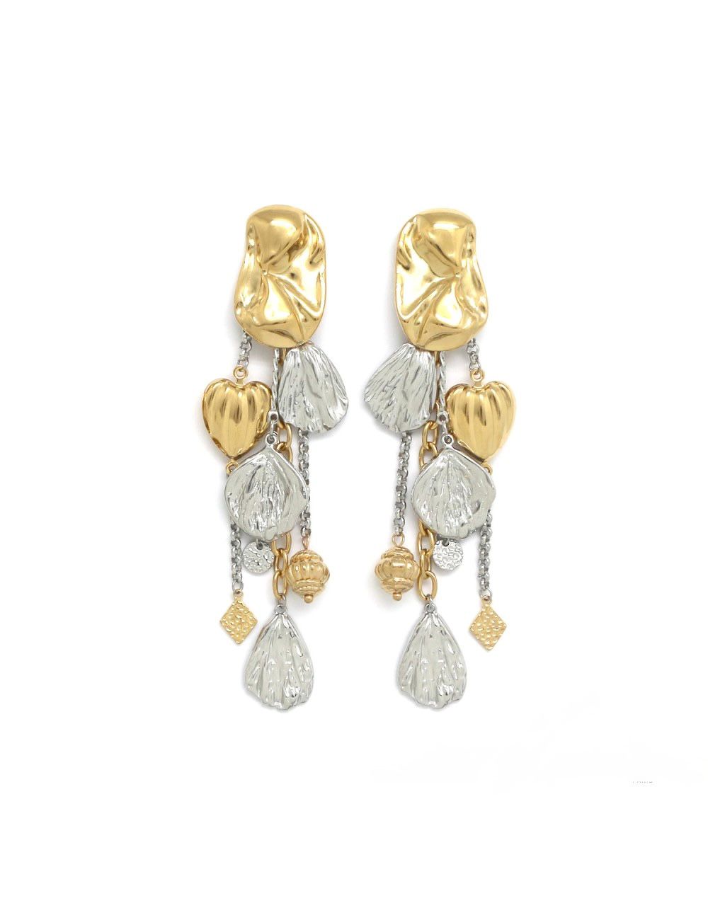 Details: Organische oorstekers met mix van gouden en zilveren bedels, elegante lengte