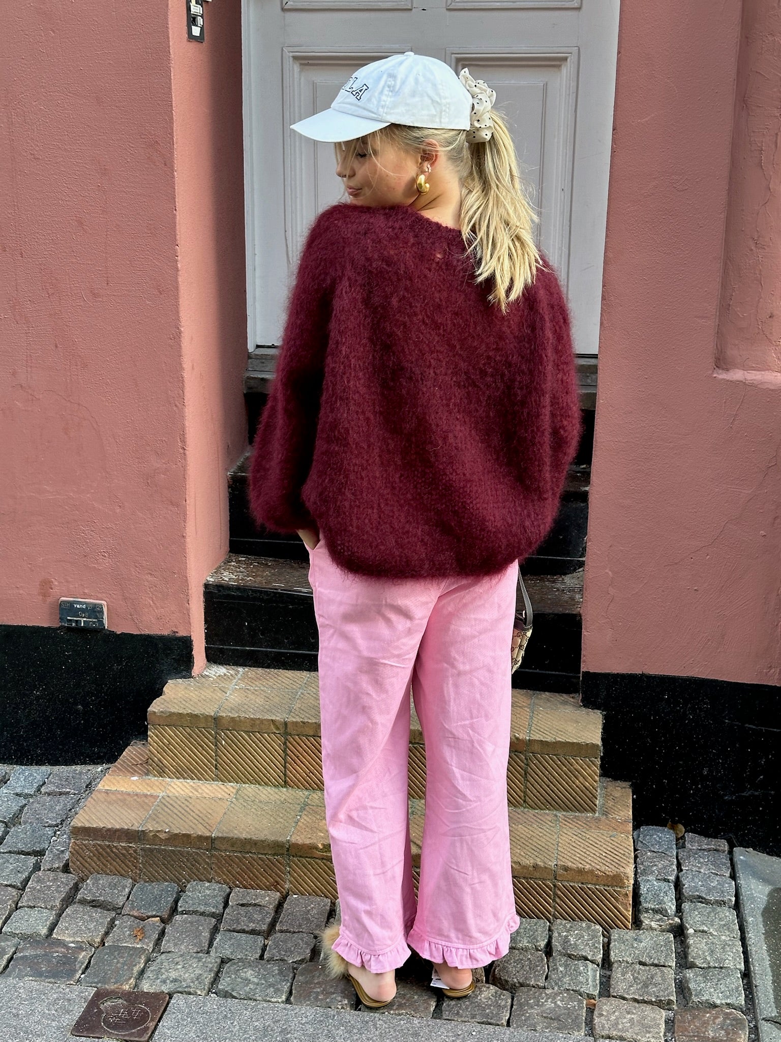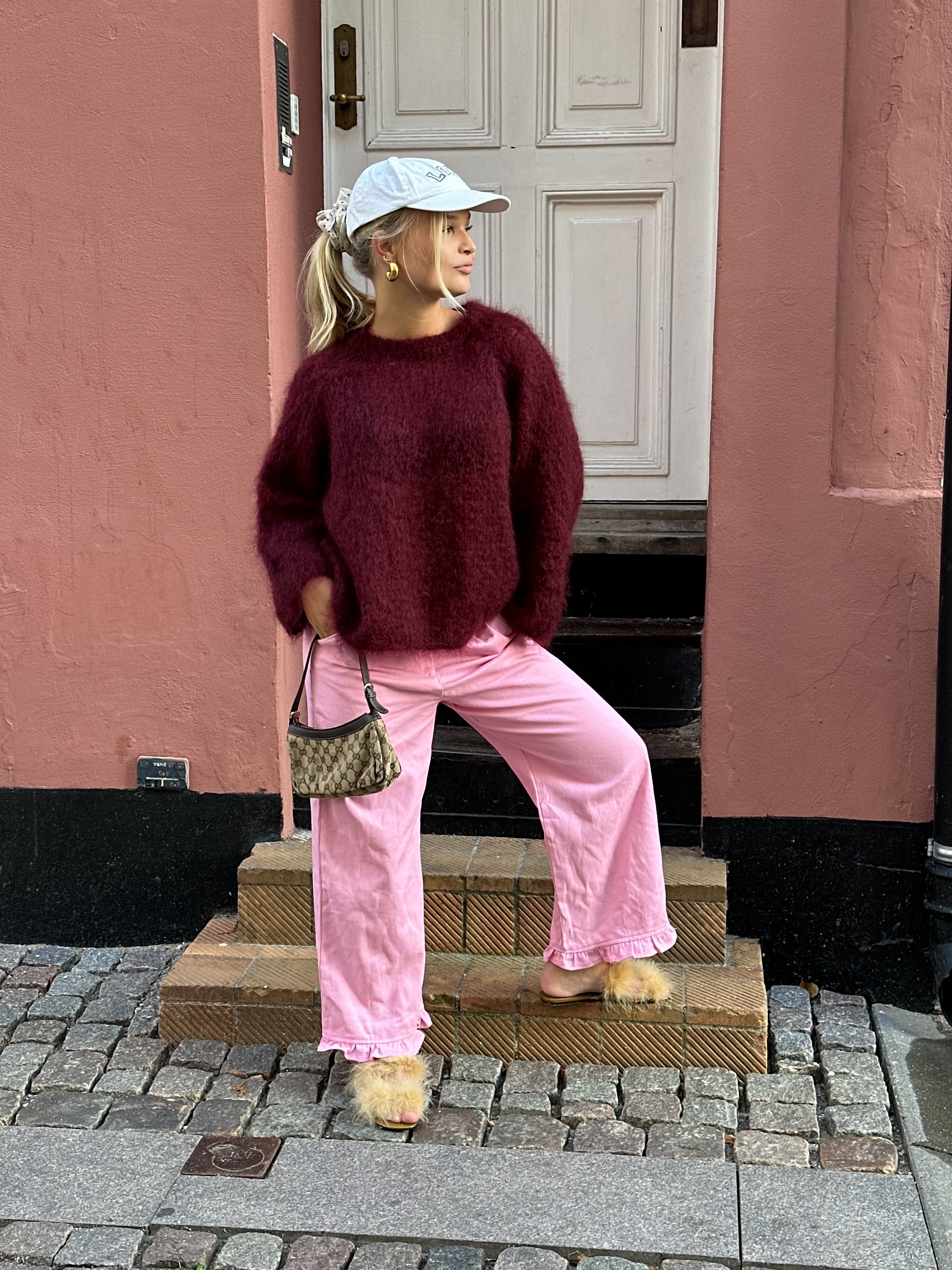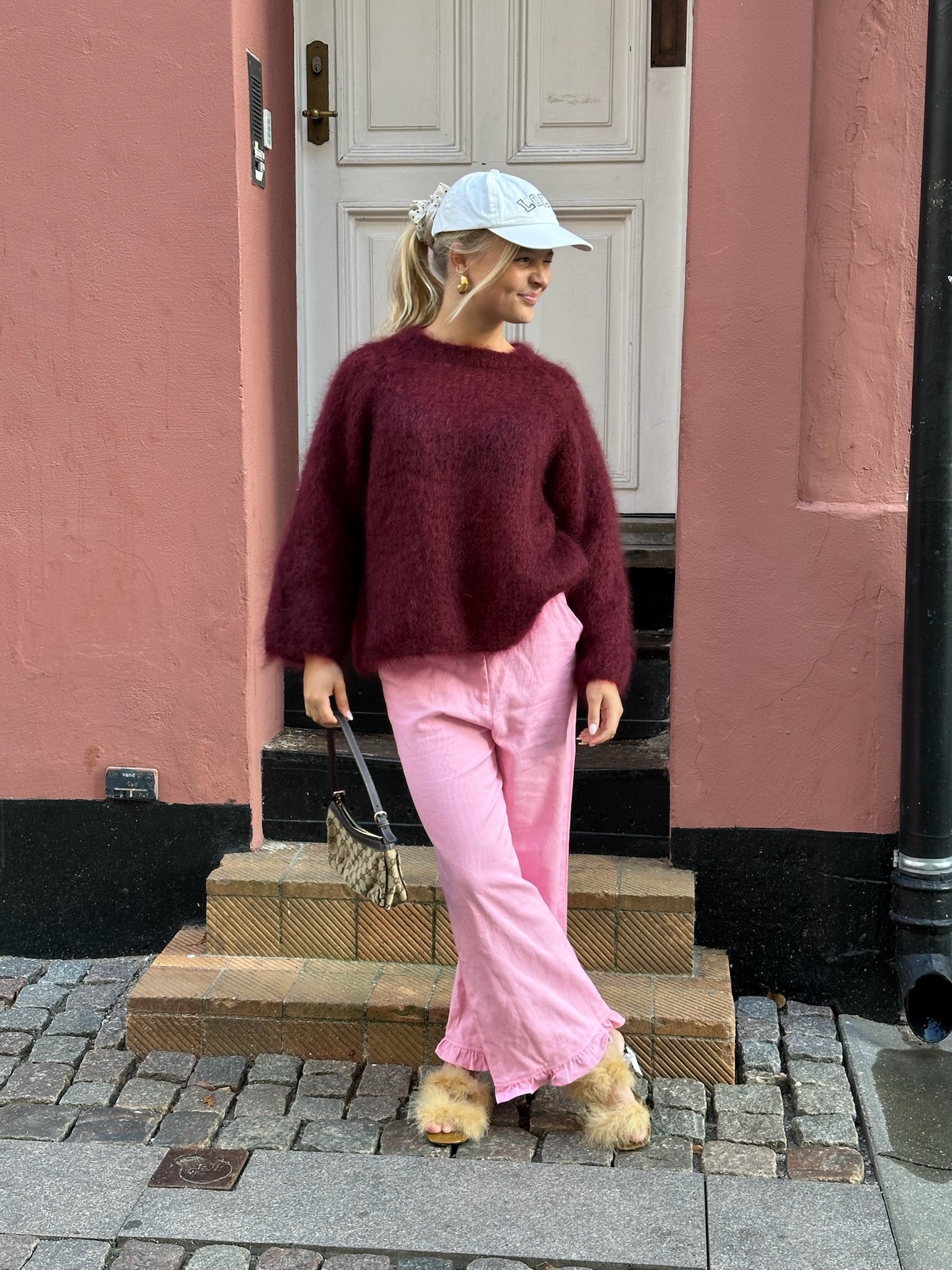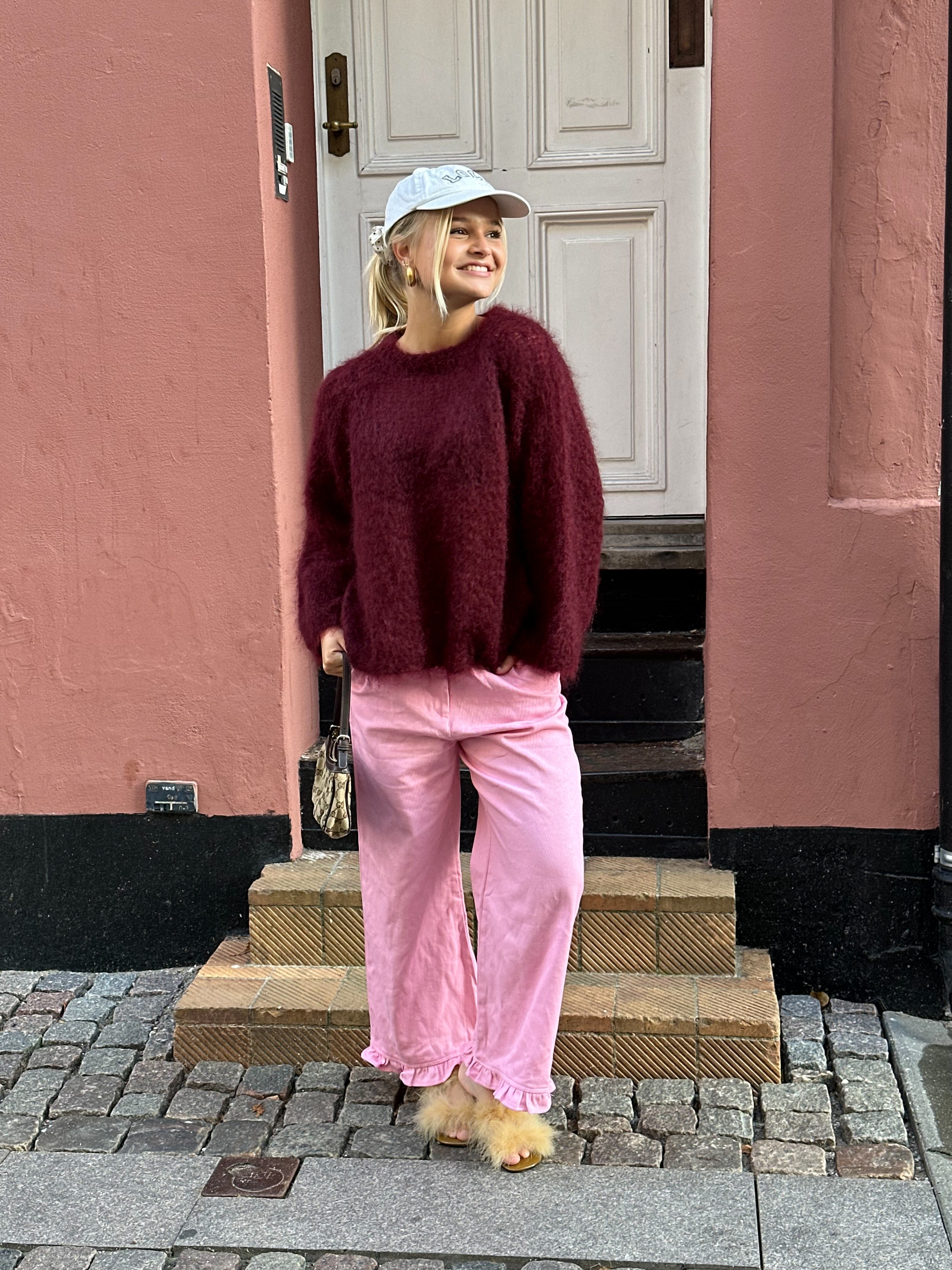 De rijke, robijnrode tint geeft de trui een uitgesproken karakter: krachtig en toch vrouwelijk, speels maar ook elegant. Dankzij de levendige kleur laat de Ruby Knit zich moeiteloos combineren, van neutrale basisstukken tot uitgesproken statement-items.