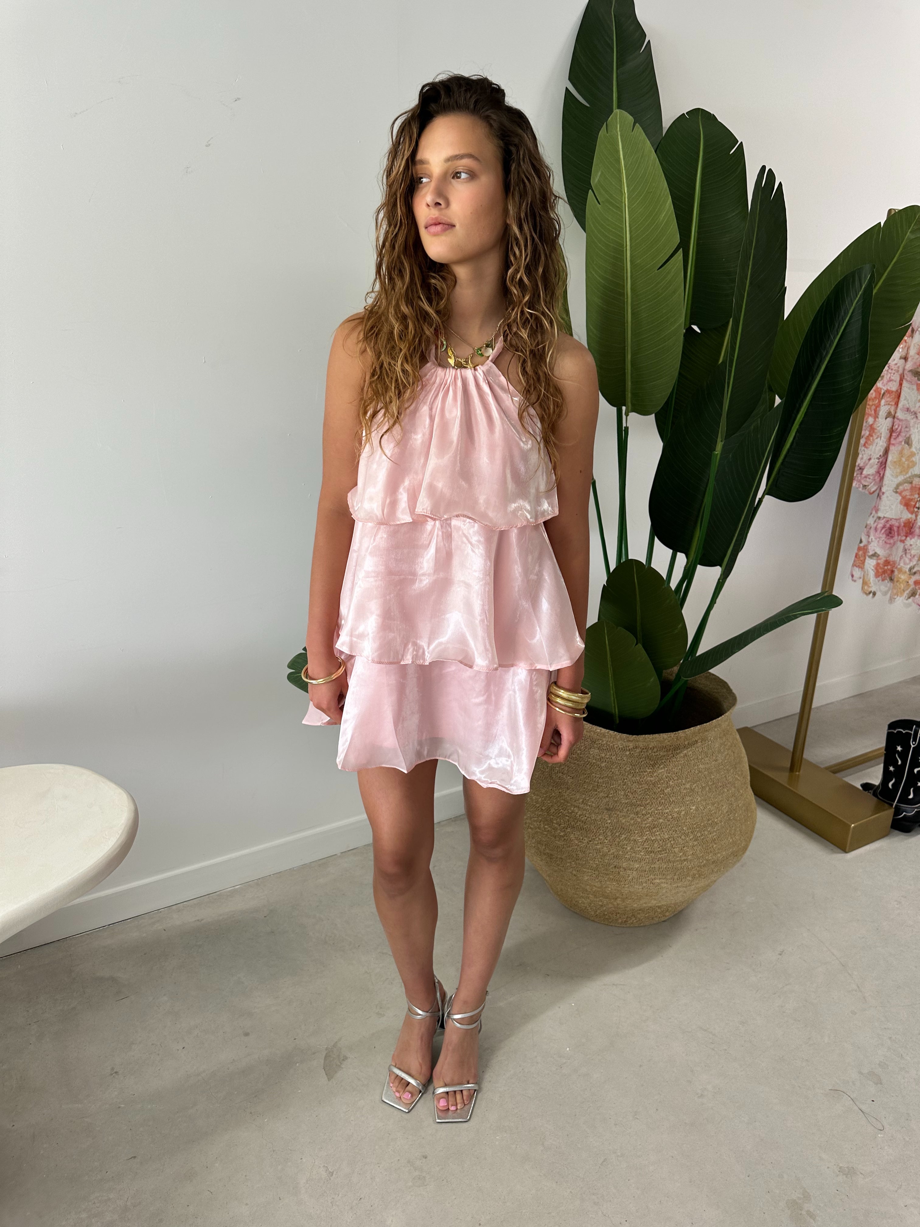 Ben je klaar om een statement te maken? π Deze prachtige lichtroze ruffeljurk, gemaakt van 100% polyester, is jouw perfecte feestjurk! π